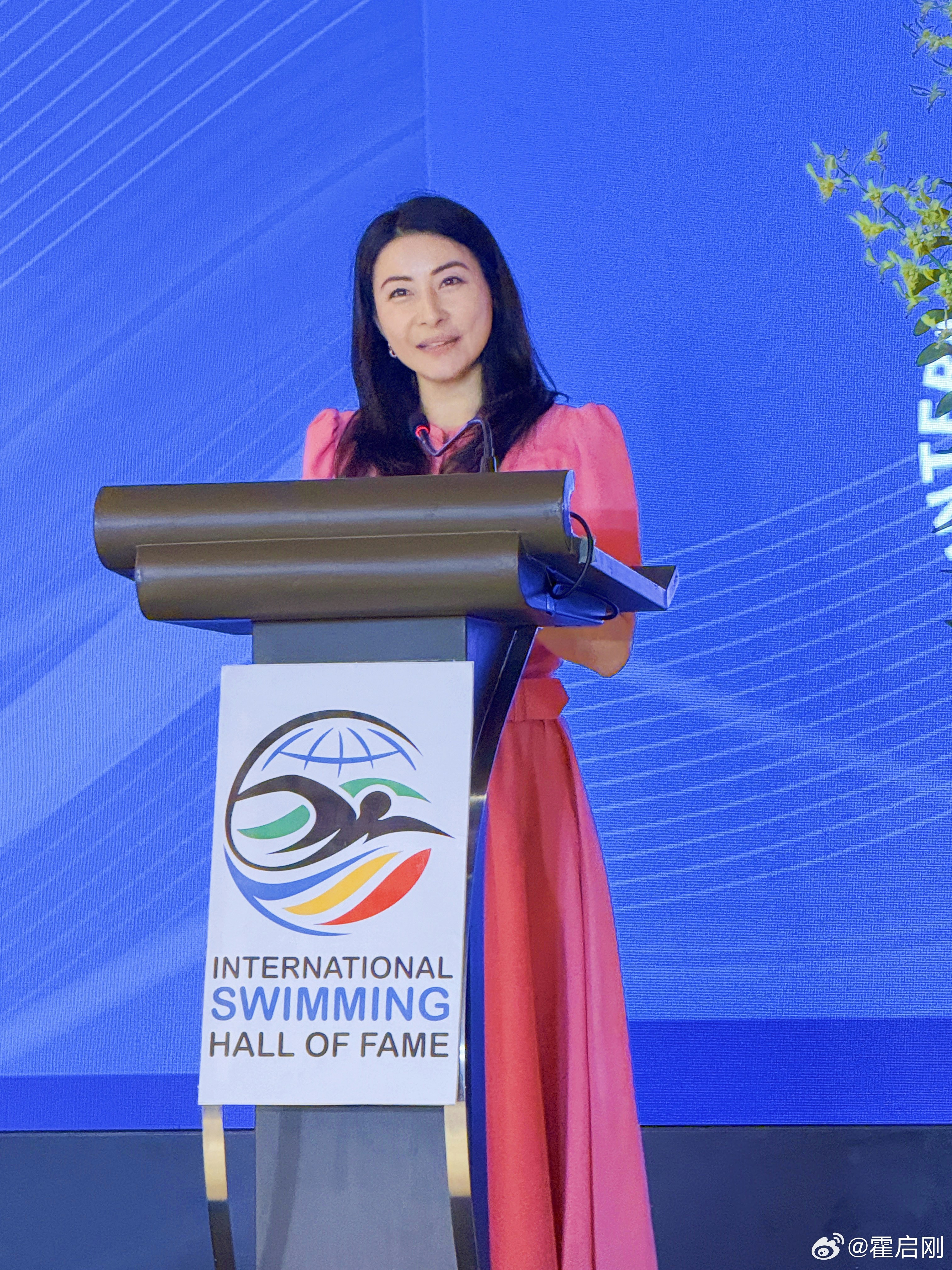 郭晶晶補領入選名人堂的獎項。(微博@霍啟剛)