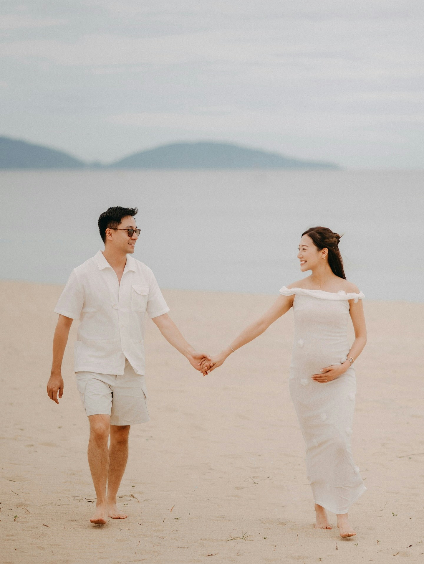 手拖手在海邊散步。(IG@sara.tingg)