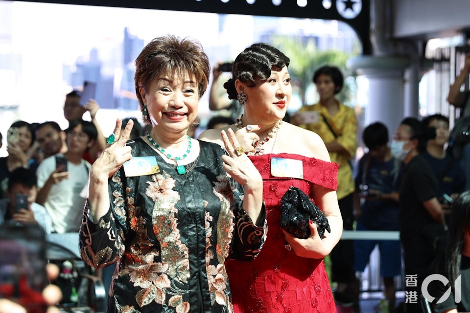文雪兒以珠鏈配襯粉紅色公主裙,完全零老態好搶鏡。她抱住小孫女跟友人逐一合照,BB女肥嘟嘟、眼仔睩睩,完全沒有喊樣好乖巧,真是超級可愛。百日宴邀請不少圈中好友出席,曾患上甲狀腺亢進症的江欣燕,在今年8月的活動上被指面容浮腫兼身材走樣,今次現身雖然仍是微胖,但已回復狀態,精神極佳,並帶媽媽一齊到賀,黑皮褸配黑絲及長靴在台上唱歌助慶,非常有型有格。