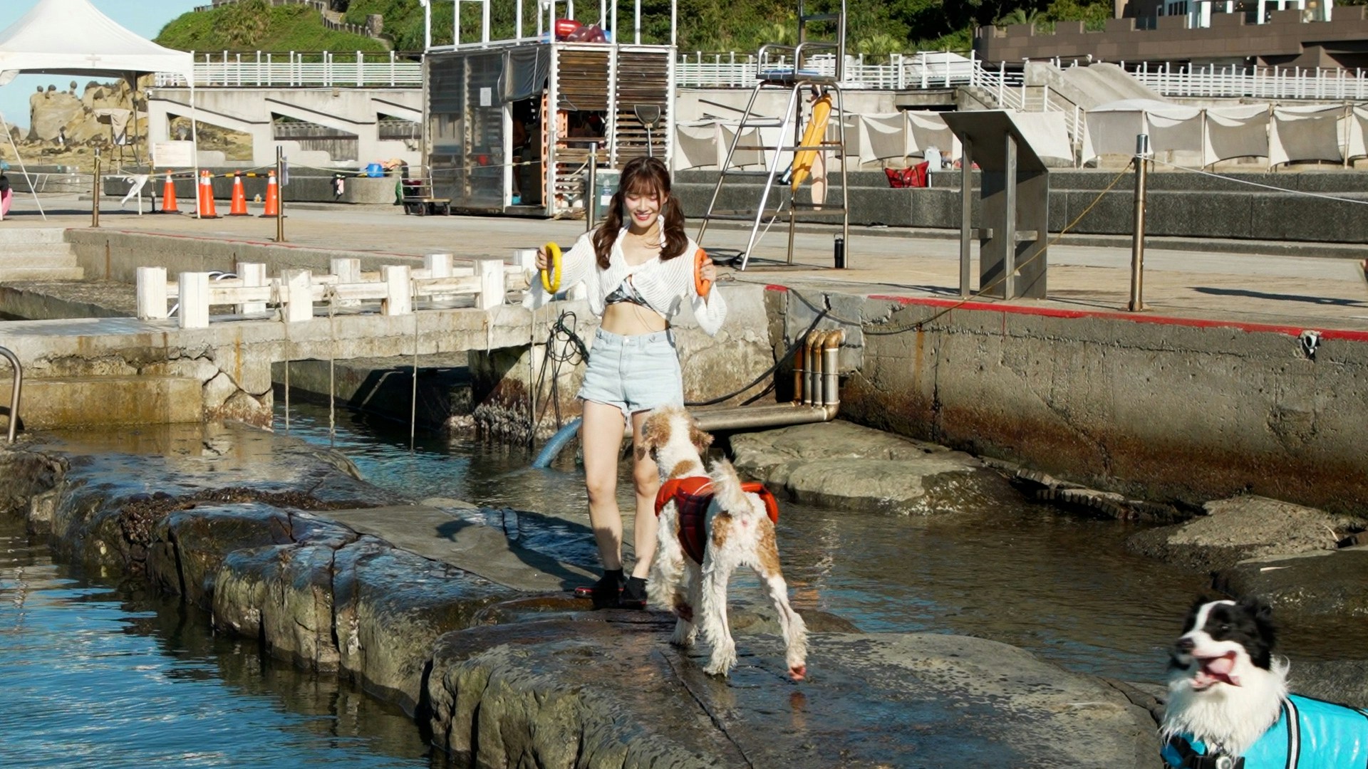 提到水上活動,台灣基隆的和平島絕對是不可錯過的熱門地點。主持人冼迪琦(小迪)攜帶愛犬,走進一座為毛孩們精心設計的天然「寵物專用池」。這裡是寵物友善的度假天堂,提供了各尺寸寵物救生衣租借服務,讓不善游泳的小狗也能安心戲水。小迪帶著毛孩盡情玩樂,與牠一同享受歡樂時光。活動結束後,這裡還提供淋浴設備,讓人寵皆能清爽返家,非常貼心周到。