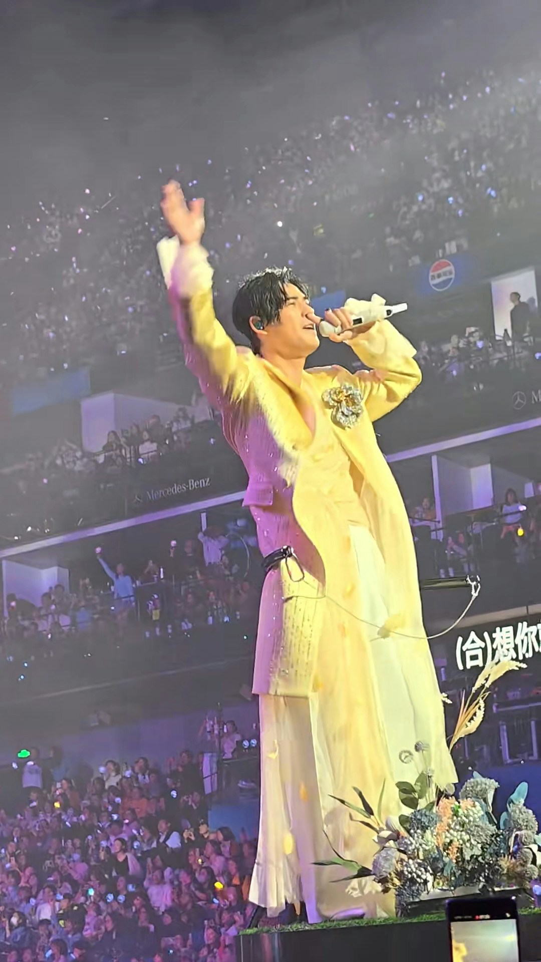 周渝民站在移動高台邊唱歌邊與粉絲作近距離接觸。(小紅書)