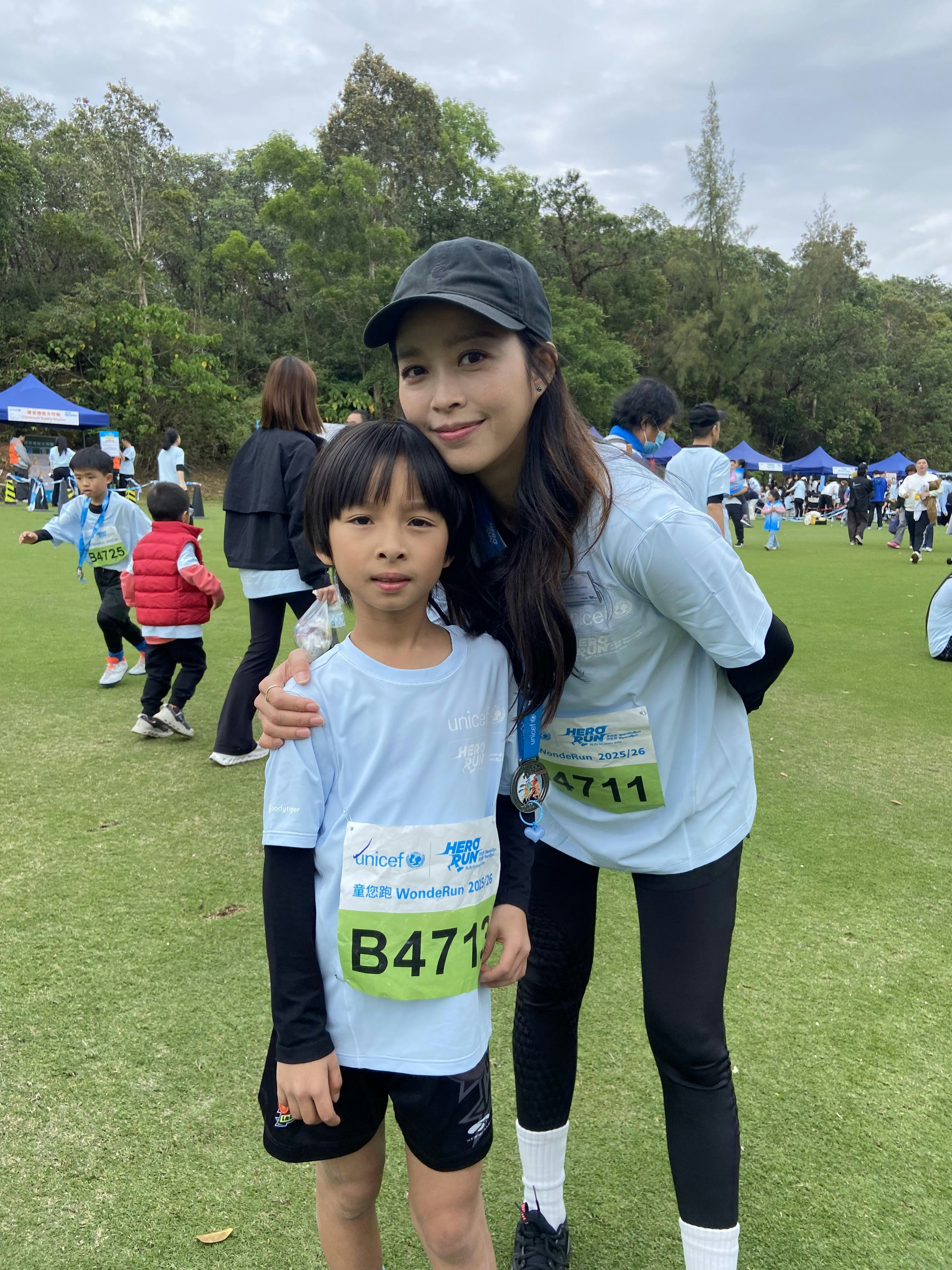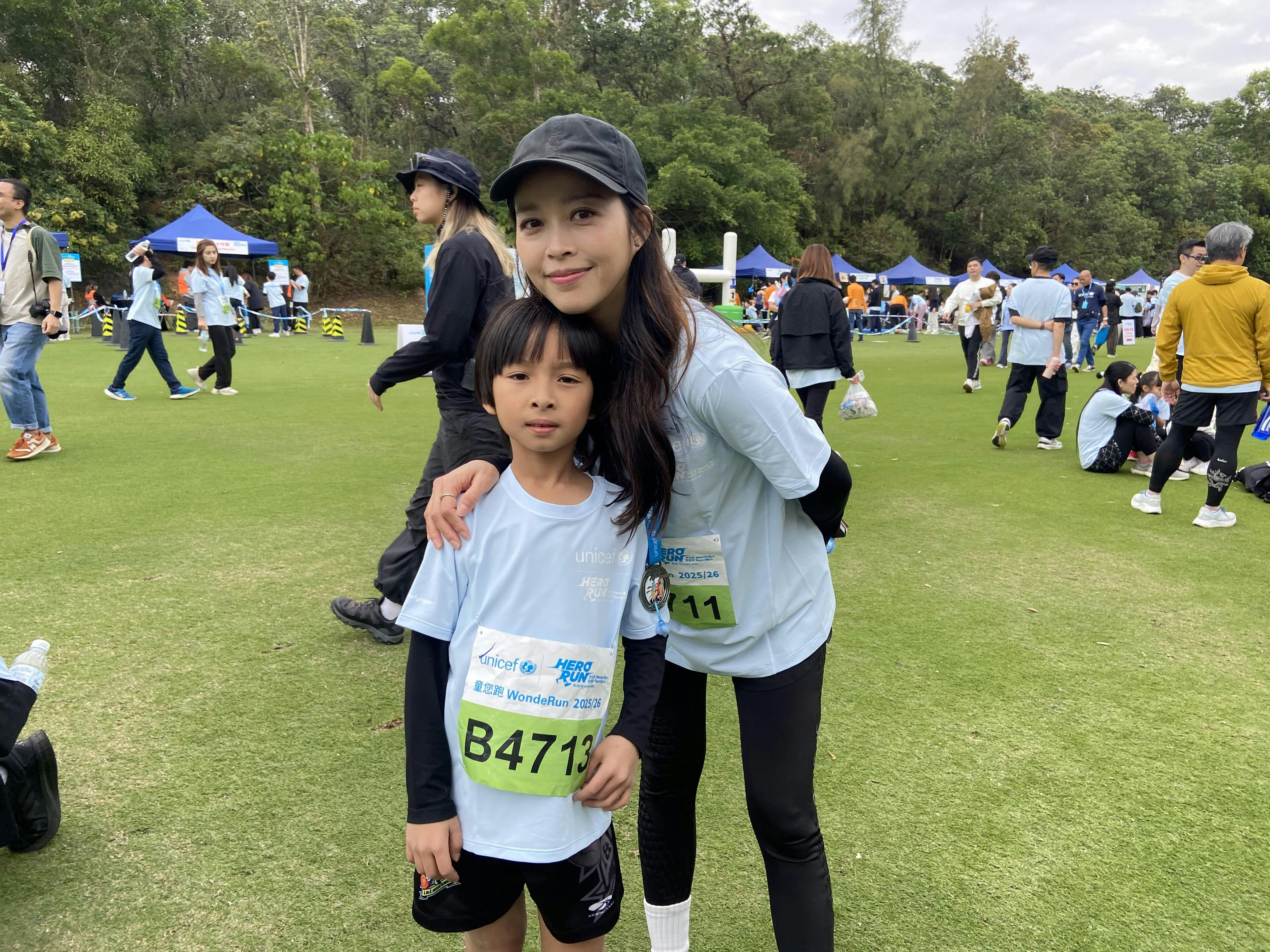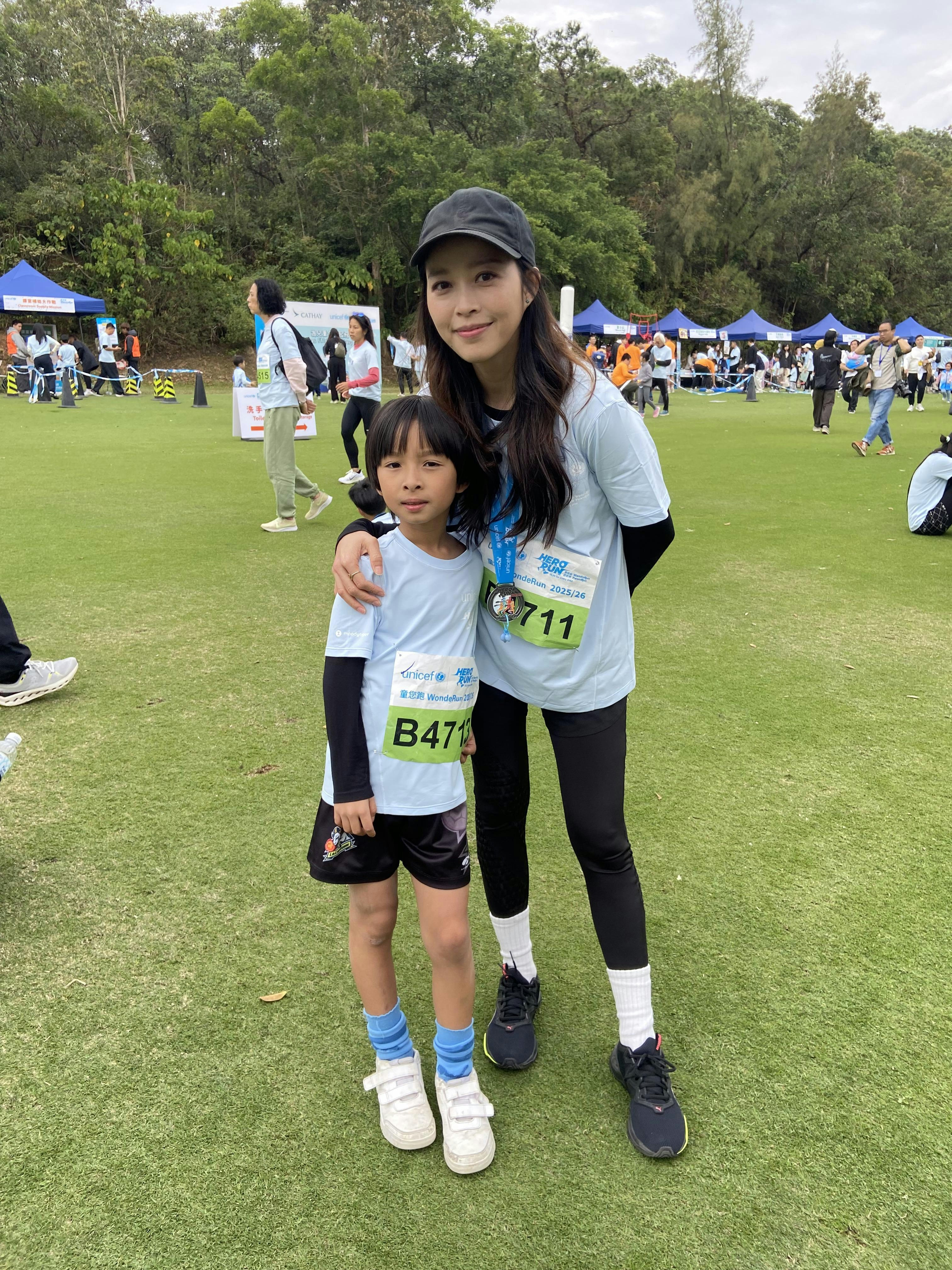 賴慰玲的兒子Marat早前於演唱會扮演「少年關智斌」,這天則兩母女一同參加慈善跑。(官方圖片)