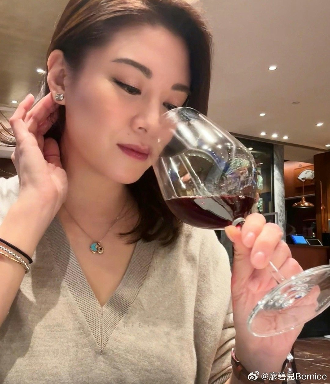紅酒生意做得有聲有色的廖碧兒,更獲香港大學方面認可,邀請她在大學裡擔任課程嘉賓講師,與學生們分享酒類上的知識。從網上曝光的照片可見,打扮端莊的廖碧兒在講師台上認真講課,全程用英文授課,亦似乎很享受是次的經驗,一度講到手舞足蹈,整個人顯得非常專業。