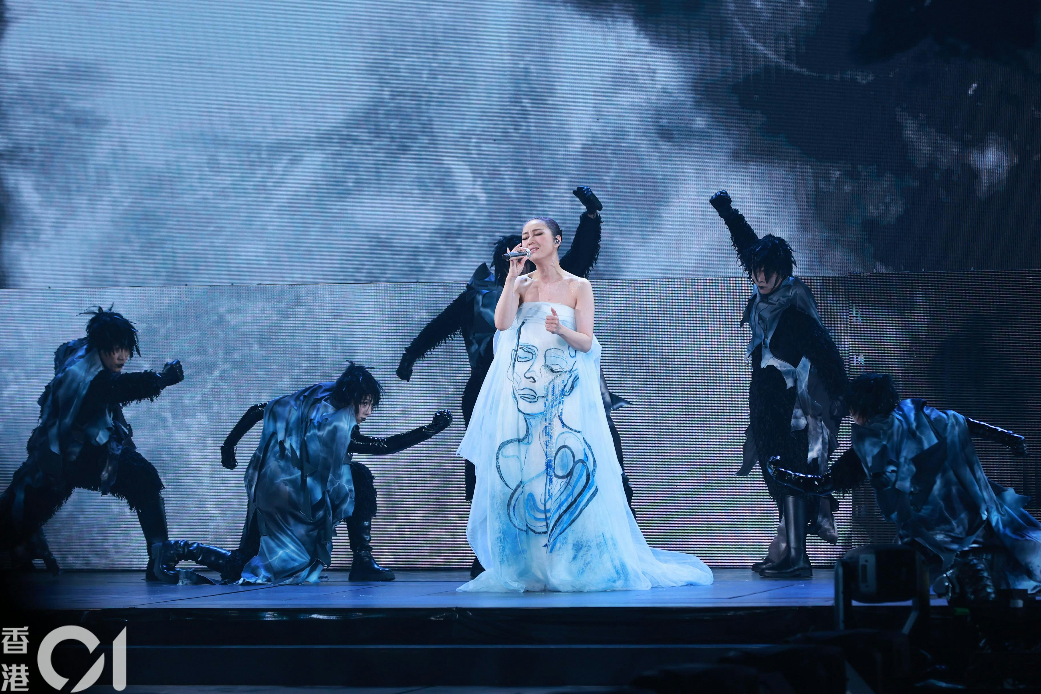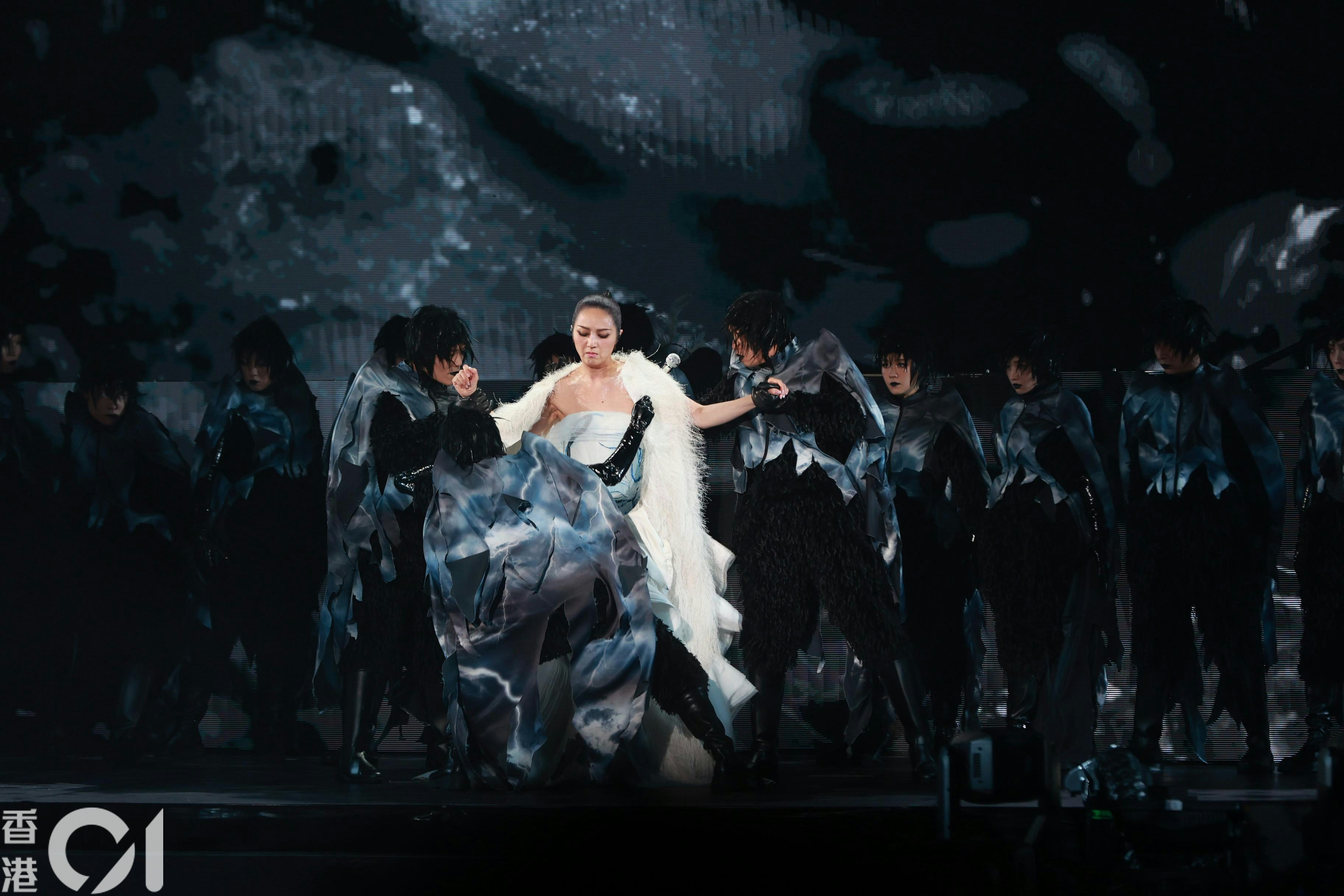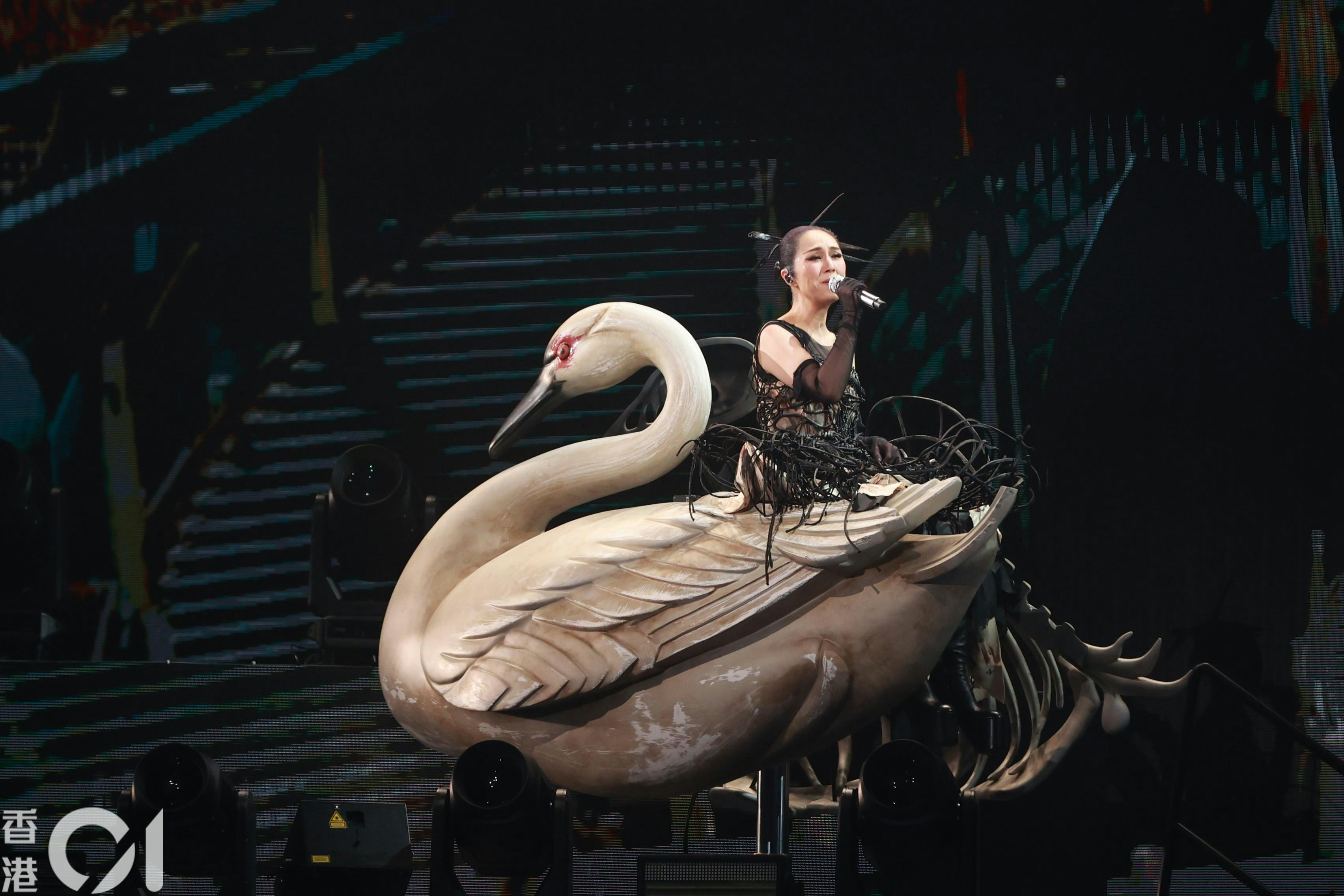 楊千嬅坐在白天鵝唱出《白天鵝》。(葉志明攝)
