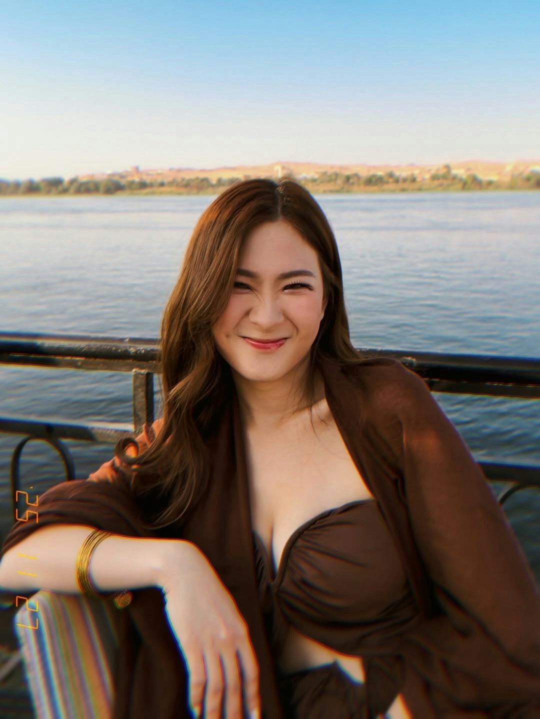 此外,來到充滿神秘色彩的埃及,心情大靚的德德昨晚(21日)冬至又突然在社交平台「派福利」。參選港姐時已憑驕人身段被封「有料之人」的她,貼出一輯以尼羅河為背景的美照。相中她身穿一條極具風情的低胸長裙,雖然外披一條絲巾稍作遮掩,但仍難掩其深長事業線,配上埃及的美景與其白滑肌膚,畫面震撼眼球,可謂「引死人」。
