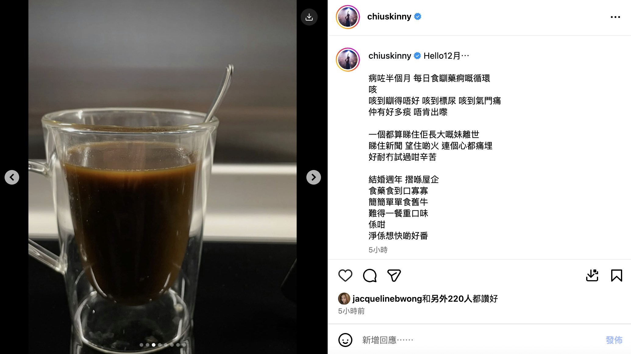 今日,趙學而在社交媒體發文,透露自己身心俱疲,不僅受惡疾纏身長達半個月,更在大埔宏福苑大火中經歷了朋友離世的沉痛打擊。趙學而詳細描述了自己近半個月來的痛苦經歷。她形容自己每日活在「食、瞓、藥、痾」的無限循環中,尤其咳嗽症狀嚴重,已經到了極度難受的地步。