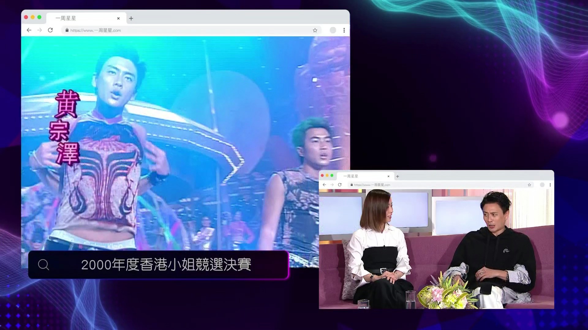 12月7日首集的頭炮嘉賓,是熱播台慶劇《新聞女王²》兩大主角佘詩曼及黃宗澤(Bosco)。在劇中針鋒相對的二人,來到《一周星星》繼續玩互寸,阿佘搞笑指Bosco演繹「賤格總監」Kingston根本是本色演出,而Bosco則抵死指自己應該落18層地獄。首集焦點內容,絕對是二人輪流自爆黑歷史!談到黑歷史,Bosco最經典事件絕對是在2008年舉行的《十大勁歌金曲頒獎典禮》上、和歌手陳奕迅合唱《K歌之王》,Bosco當晚的唱功成為多年來網絡熱話,並因而誕生了「樂壇欠黃宗澤一個交代」這句名句。