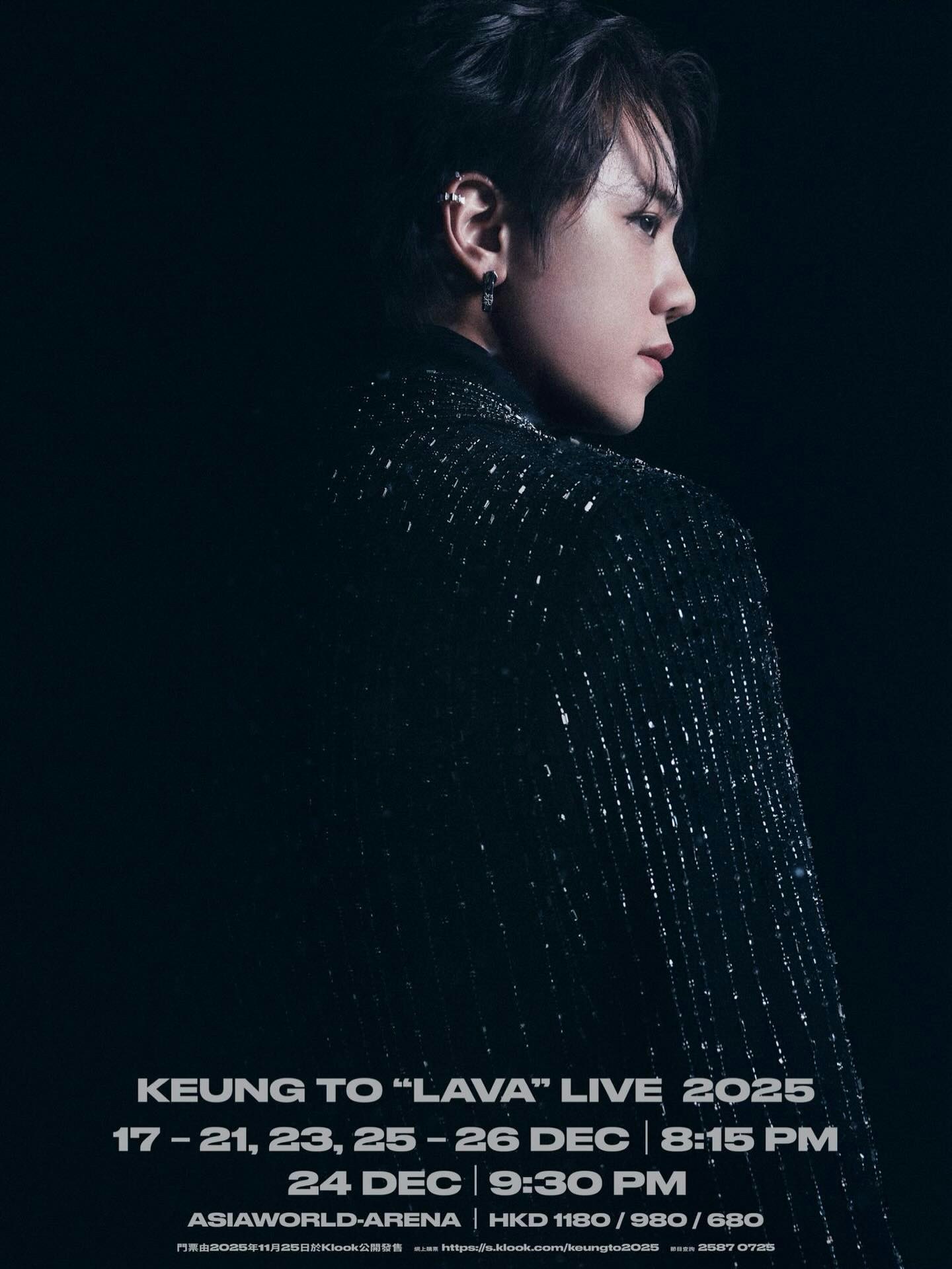 姜濤將於12月舉行第二次個人演唱會《KEUNG TO “LAVA” LIVE 2025》,由於反應熱烈,早前更宣布加開至七場。演唱會主題「LAVA」意指熔岩,象徵承載與重生,姜濤曾表示熔岩同時具備水的流動性與火的熾熱,恰如他自身剛強與柔軟並存的性格。原本的宣傳海報亦配合主題,姜濤身處一片橙紅色的熊熊烈火之中,視覺效果具衝擊力;尤其動態版本中,火燄效果更不停搖曳舞動。然而,今日(1日)官方釋出的最新海報,火海完全消失,換成一張全黑冷色調的照片,相信是與近日大埔宏福苑大火有關。