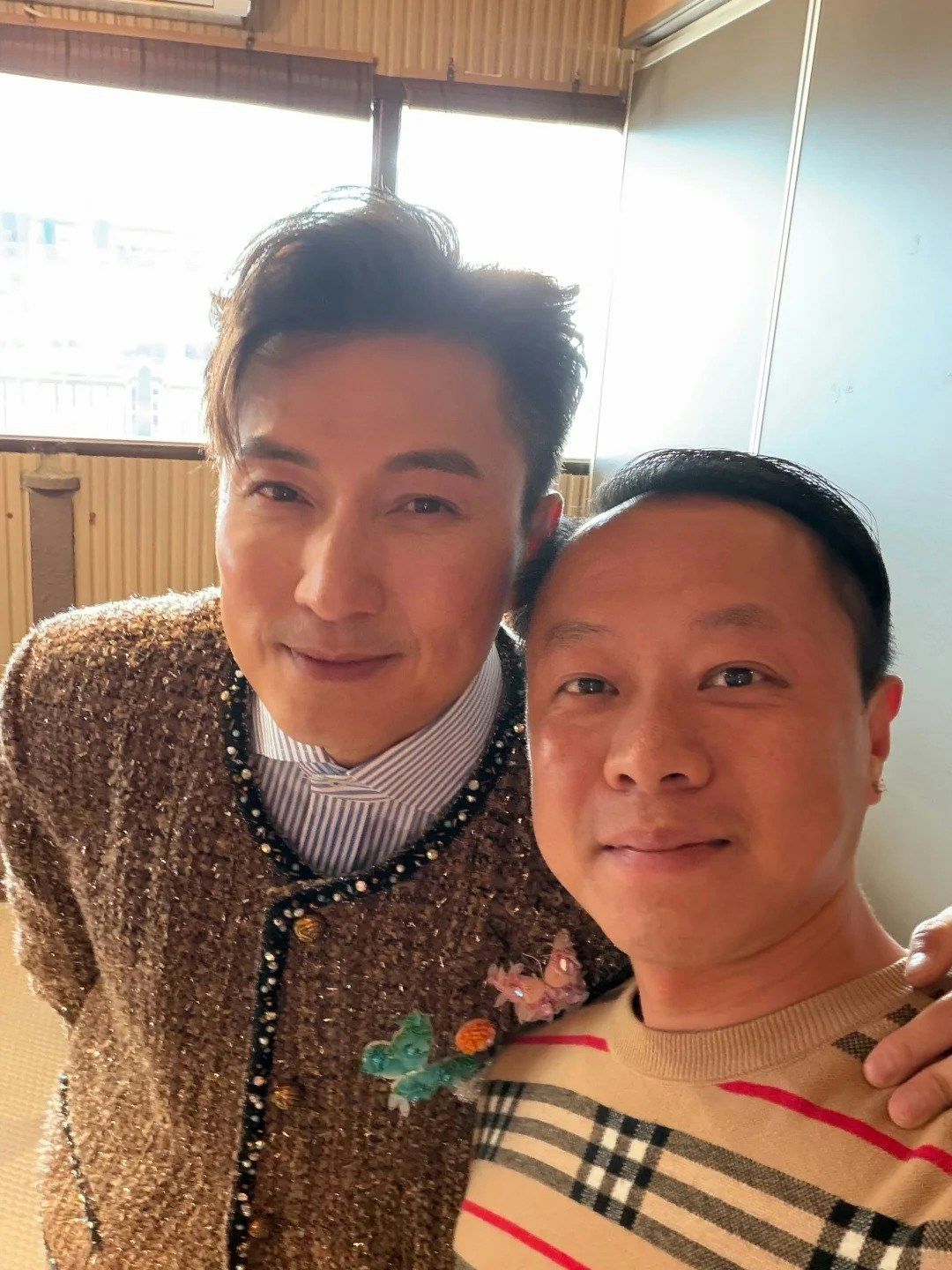 從該名網民曬出的合照所見,當日黃宗澤以一身休閒運動風示人,而陳山聰則斯文打扮,雖然是在網民的「零濾鏡」原相機鏡頭下,但兩人的顏值依然相當「抗打」,絕對是保養得宜,博主也大讚:「靚仔不需要美顏」。
