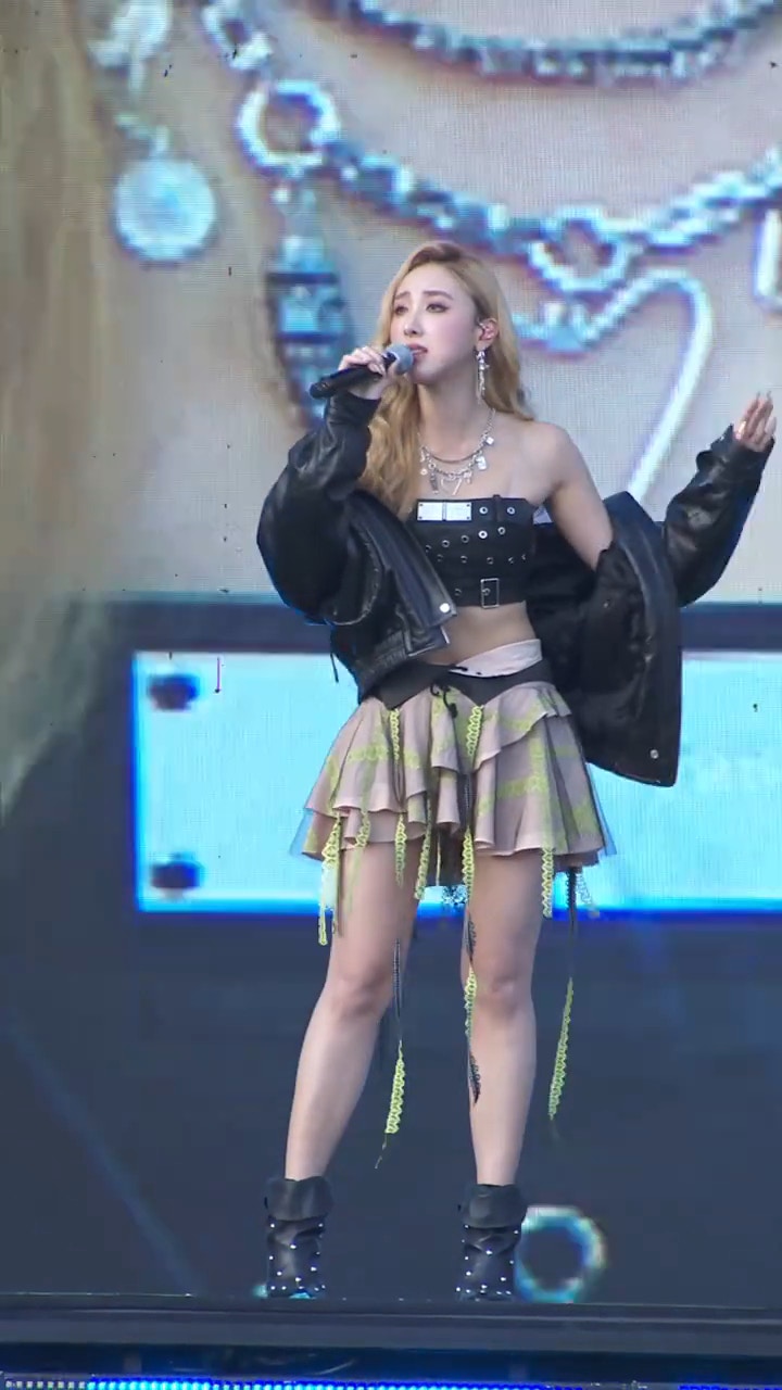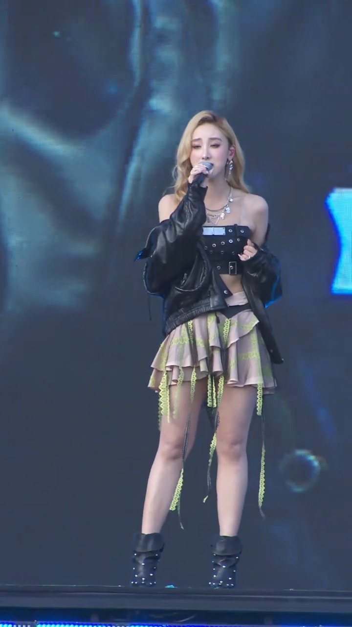 許靖韻是英皇娛樂近年力捧的歌手,除了有歌喉,亦都有外型,早年憑「小背心」成功殺出一條血路,帶點性感更吸引。早前許靖韻到廣州出席音樂節,從一把標誌性的金色長髮,身穿黑色Tube Top配搭超短裙,極之撩人。