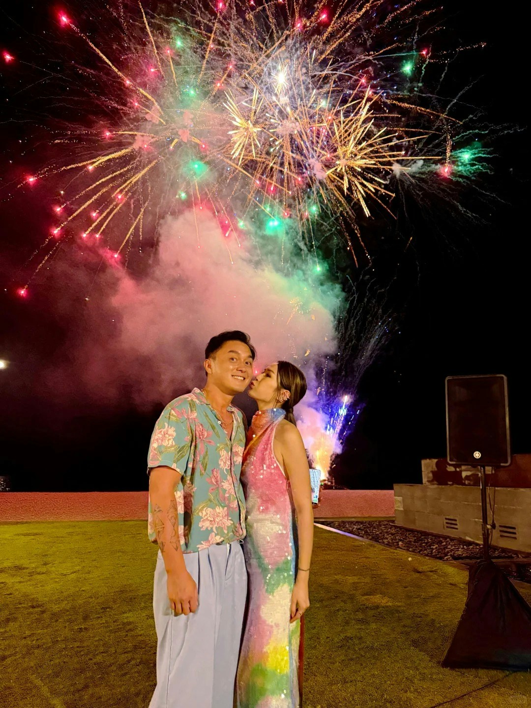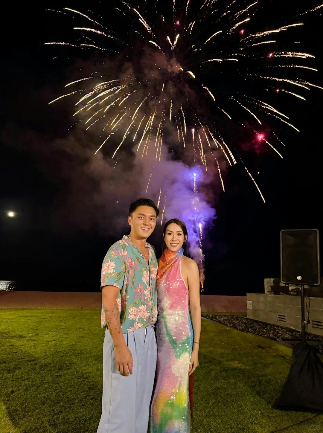 聖誕節是一個甜蜜和溫馨的日子,大家都會同最愛的人一起度過,楊明和莊思敏也不例外,莊思明在社交平台分享多張靚相,並寫道:「平安夜快樂,Merry Christmas everyone」。從照片可見,兩人應該出埠慶祝,並悉心打扮穿上情侶色系的服裝,身穿露背長裙的莊思明,刻意轉身大曬白滑美背,並在璀璨的煙火背景下向楊明連環送吻,畫面sweet到爆。