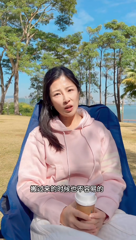 「其實我們搬過來都不容易,非常辛苦,我這一輩子也不再搬家了。搬家的時候,你看我老公一條毛巾背東西,真的好辛苦,他把整家所有東西都扛上了,我們兩個都一直穿着那個腰封,因為那個腰不停的弄傷,但沒辦法,我們兩個都要扛對吧!」