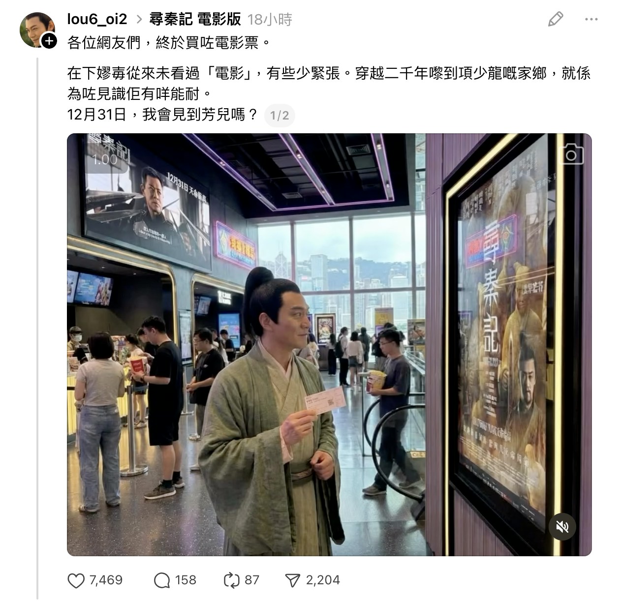 近日Threads有一個以「嫪毐」為名的專頁出現,版主用AI製作了「嫪毐」江華穿越到現代的照片,又模仿嫪毐語氣說話,與網民交流,獲得很多Likes。由此可見即使連晉和嫪毐無份出現在電影版都好,在觀眾心中仍有舉足輕重位置。