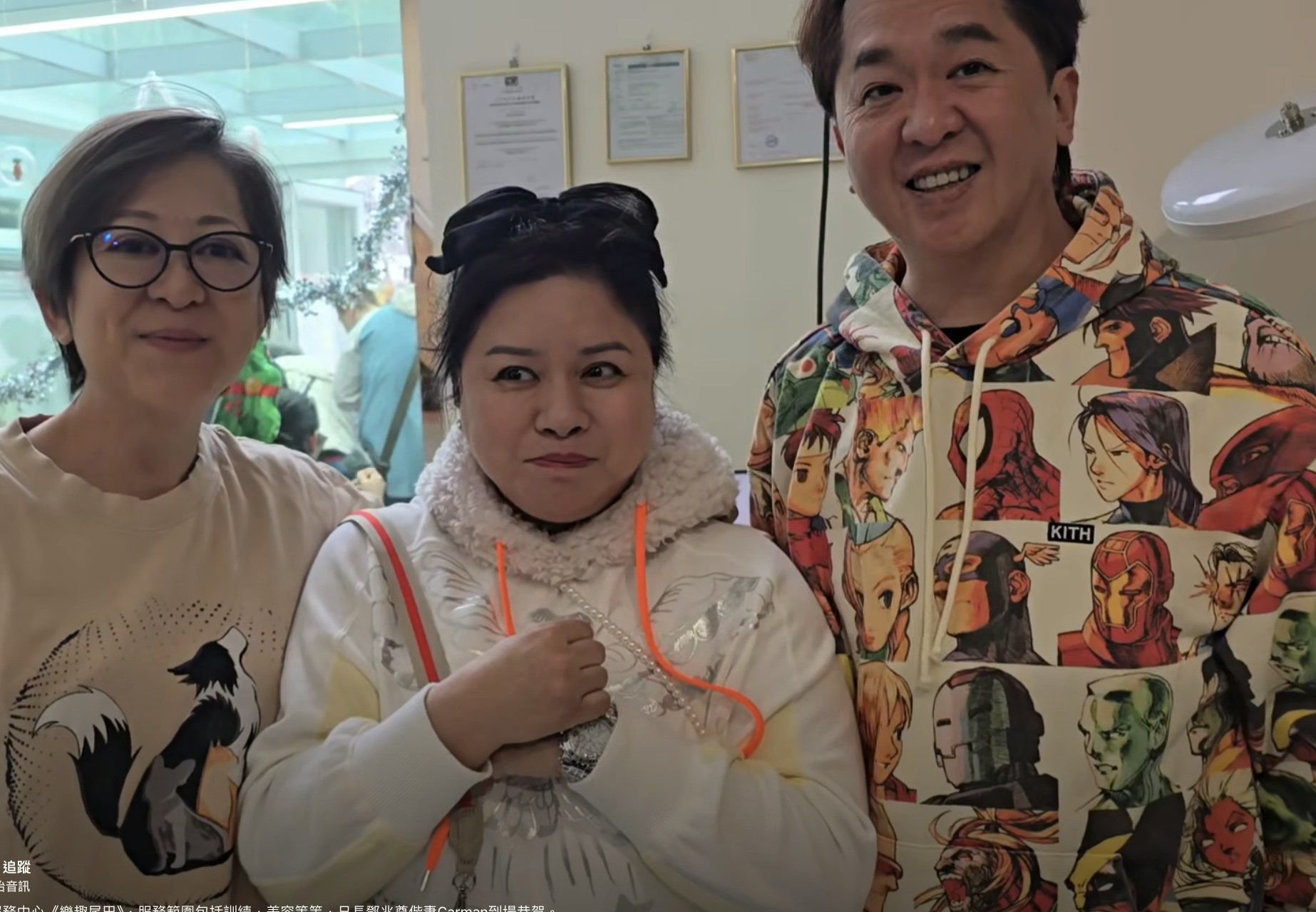 日前「徐蓉蓉文化工作室專頁」在Facebook上載訪問片段。Carman站在中間,鄧兆尊鄧翠玉站在一邊,鄧翠玉親密地與Carman站在一起,並被爆現場頻頻叫「大嫂」,足見姑嫂關係融洽。片段中,Carman做訪問時不時騷出左手所戴的靚錶,閃閃發光,相信平時鄧兆尊對她愛錫有加。Carman頗為怕醜緊張,雙手緊握合十,小鳥依人靠在鄧兆尊鄧翠玉身旁。問到平時與姑仔的相處細節時,Carman大讚道:「佢對屋企人好好,好有親情,上上下下都照顧晒。」鄧兆尊則指阿妹做甚麼都支持,一家人相處和諧。
