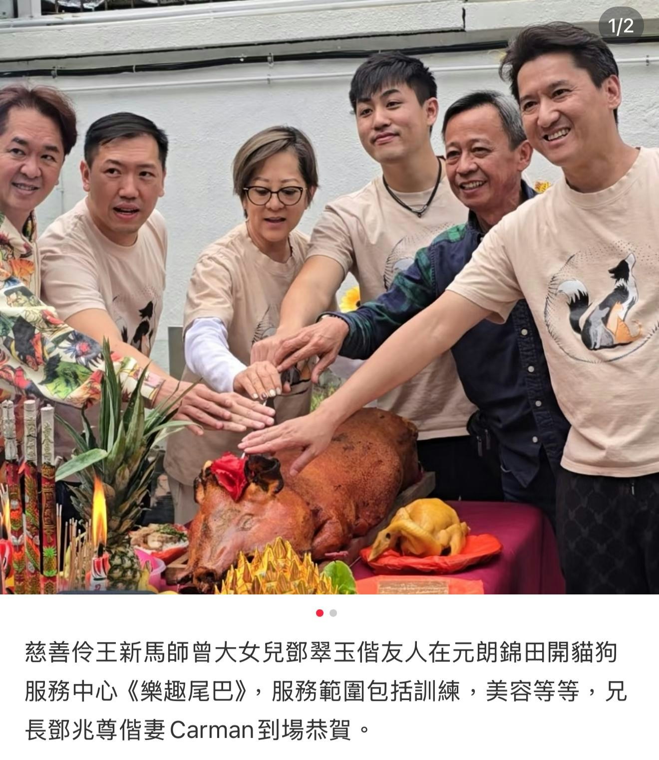 鄧兆尊出席細妹鄧翠玉的貓狗服務中心開張。(小紅書)