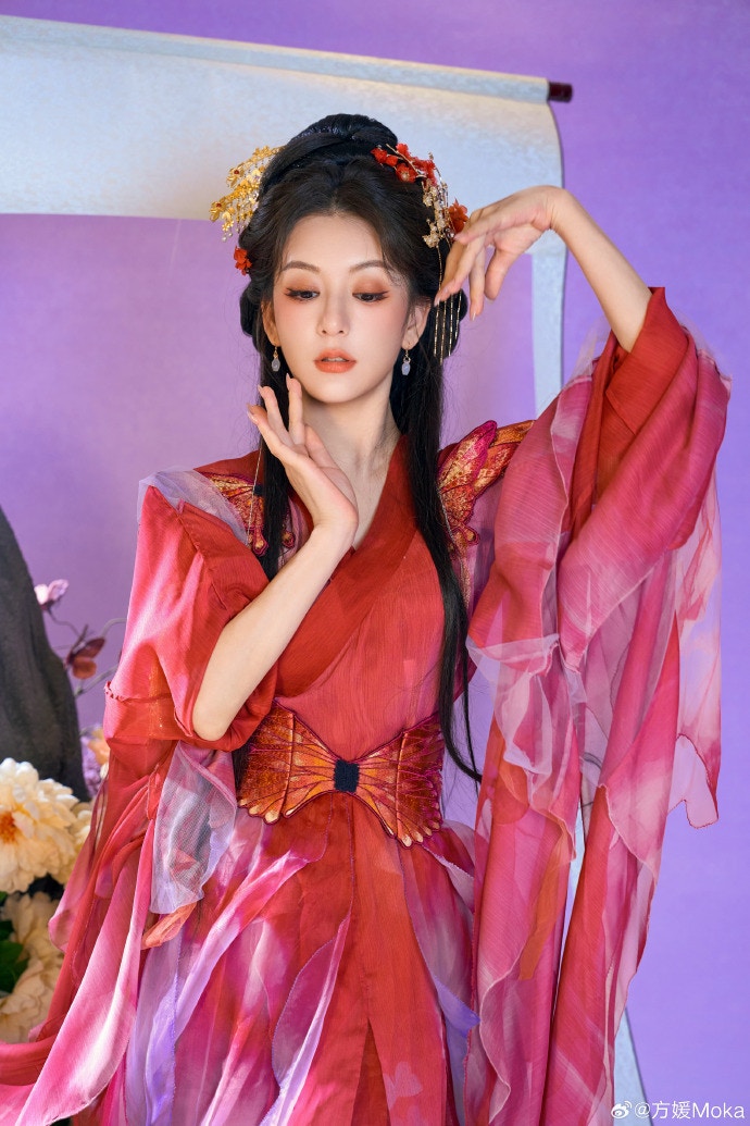 從方媛上貼的照片可見,她梳着古典盤髮,髮上插着飾物,並身穿鮮色系漢服,整體散發仙氣氣質。而她還在畫中中間擺出多個充滿古典的Pose,展現出甚麼叫「畫中美人」,非常漂亮。而是次她還與以「妲己」造型亮相的溫碧霞同台行catwalk ,她的「妲己」形象深入民心,盡現媚骨天成的氣息,美艷驚人,再次勾起不少網民童年回憶。