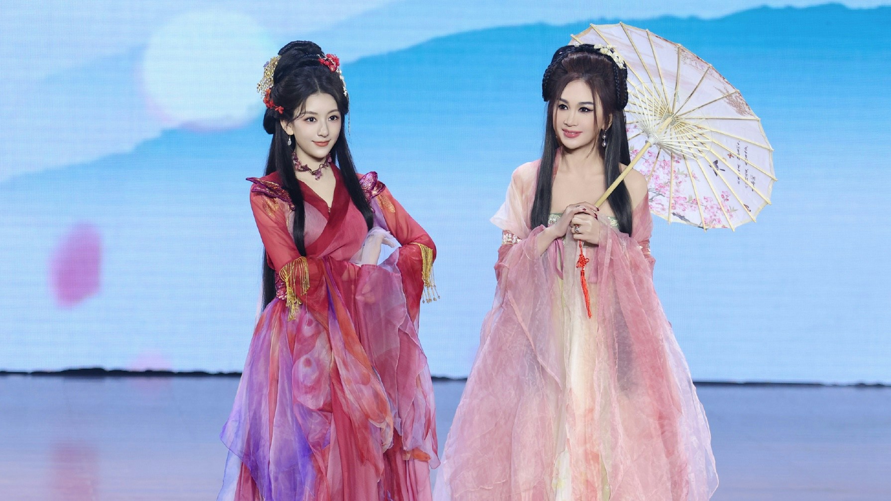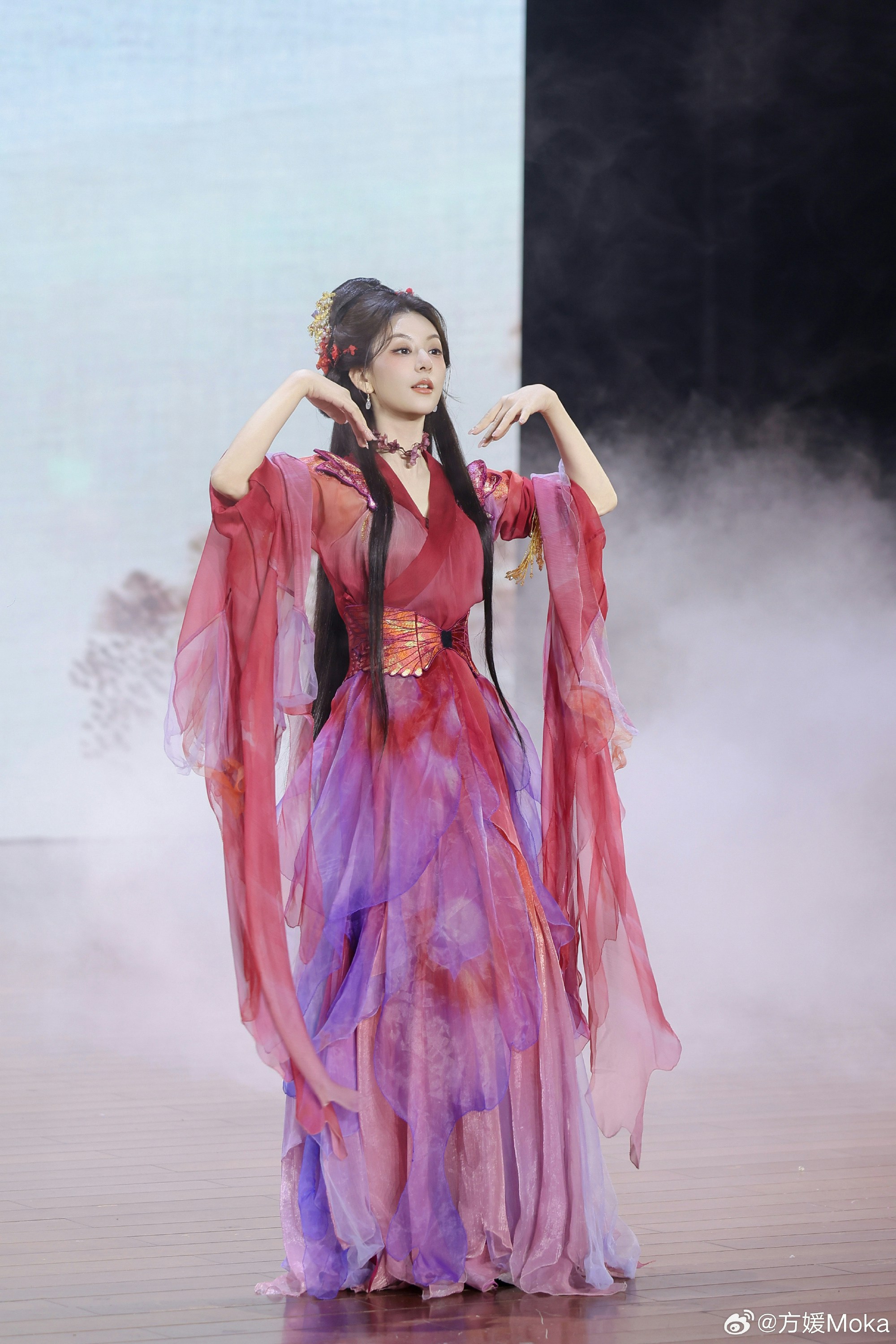 而剛滿月「出關」的方媛亦馬不停蹄接下工作,近日就現身杭州以古裝示人行catwalk ,其古裝扮相唯美仙氣,完全不輸在旁的「妲己」溫碧霞,令網民們紗紗激讚。