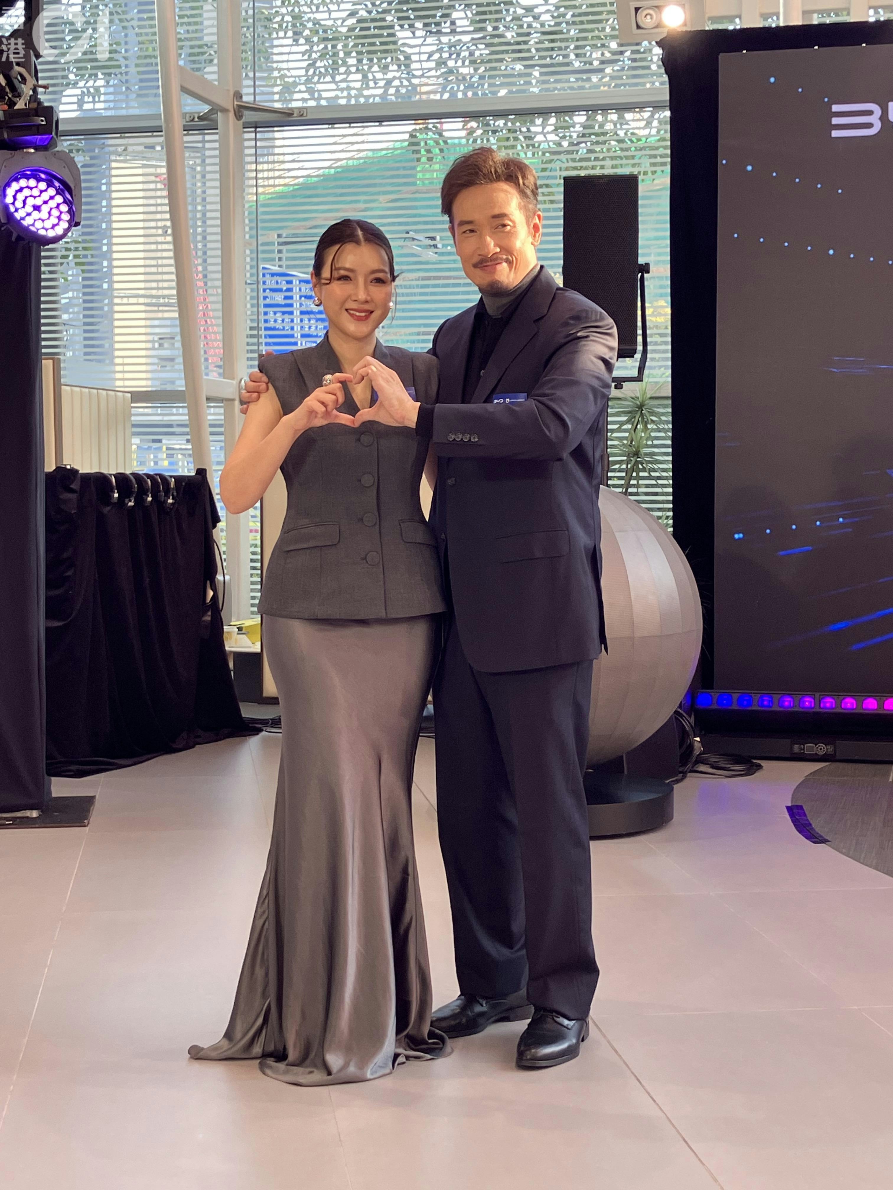 陳豪和太太陳茵媺出席汽車活動。(林迅景 攝)