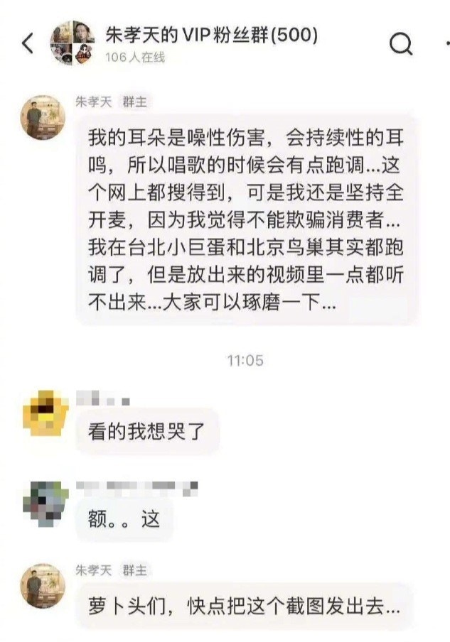 一波未平一波又起,朱孝天在粉絲群組內的驚人爆料更將風波推向高峰,他自揭因患有「噪性傷害」,導致長期耳鳴及唱歌時頻繁「跑調」(走音),但他強調自己堅持「開全Mic」真唱,絕不欺騙消費者。隨後他話鋒一轉,意有所指地爆料:「我在台北小巨蛋和北京鳥巢其實都跑調了,但放出來的視頻裏都聽不出來,大家可以琢磨一下。」由於五月天是鳥巢開騷常客,這番說話被指影射這兩個場地的演出(包括五月天)涉嫌「假唱」或經過後期修音處理。
