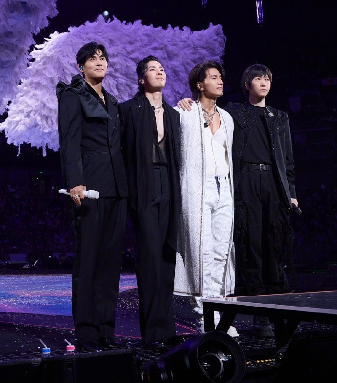 這次「F3」加上阿信的夢幻聯動,瞬間引爆全場氣氛,掀起一波橫跨世代的超級「回憶殺」,讓台下無數粉絲彷彿穿越時光,重返F4最輝煌的青春歲月。雖然演出期間發生驚險小插曲,阿信不慎叉錯腳從兩米高舞台墮下導致雙手擦傷,但他極速重返舞台繼續演出,更興奮地向三子熱情索吻,場面既温馨又熱血。