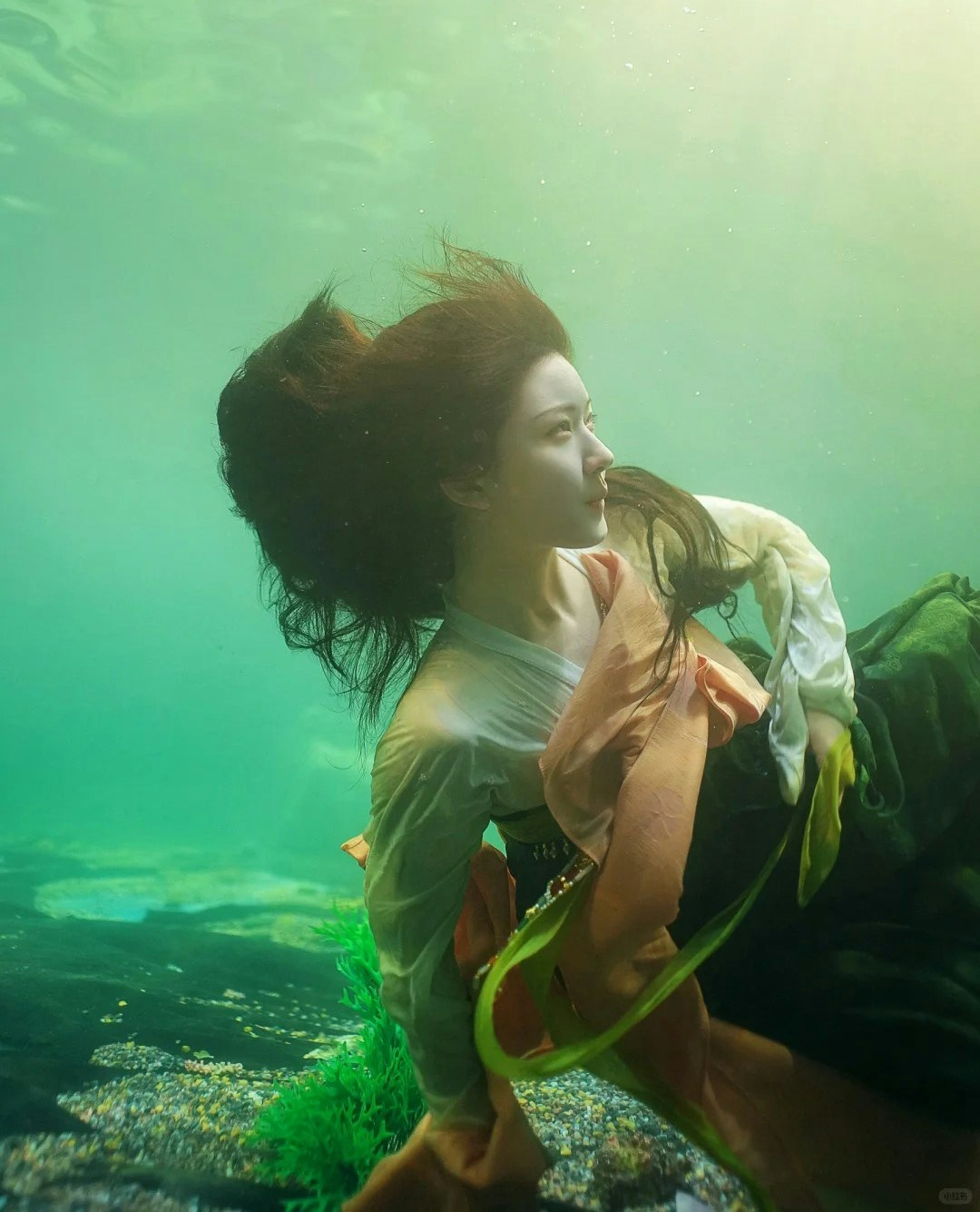 趙露思在《珠簾玉幕》飾演採珠奴「端午」,為配合開場的重頭潛水戲,趙露思特意聘請教練特訓潛水。趙露思曾透露過,她其實怕水,更怕深海,有深海恐懼症,平常也不愛搭船,一開始下水拍攝眼睛還看不見……後來愈來愈有安全感,秉持著來都來了的信念,非得把這場戲演好,才能拍好下水戲。(小紅書@趙露思工作室)