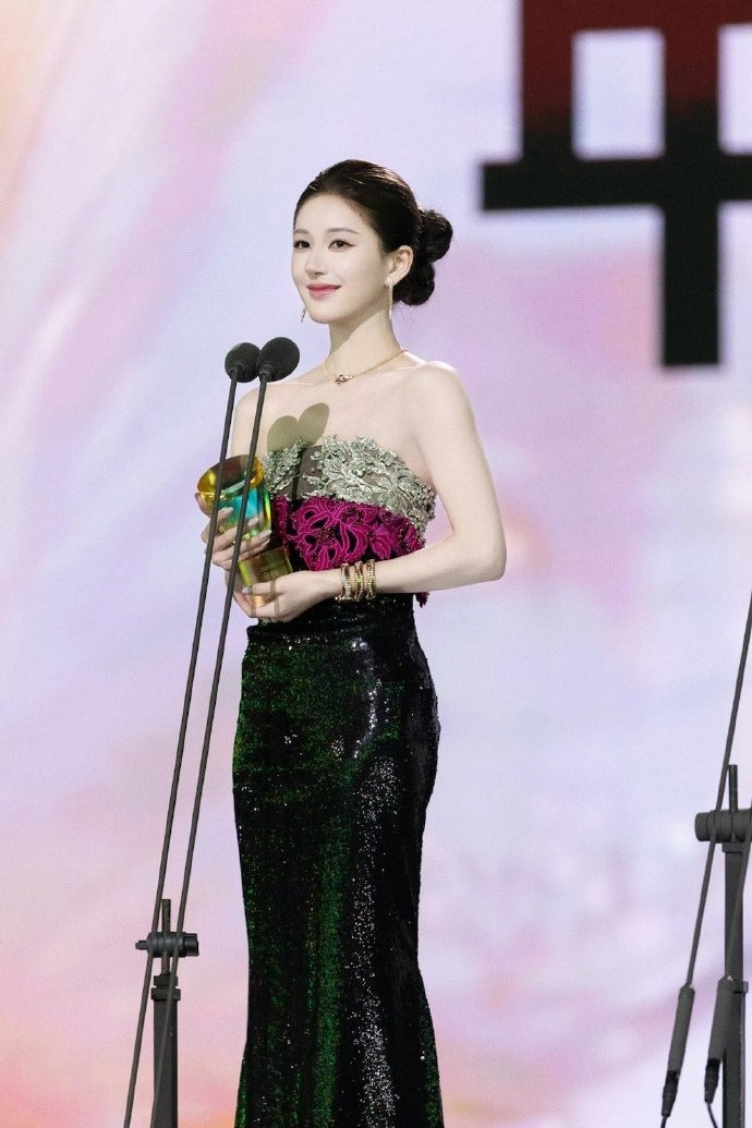 然而當晚趙露思的髮型、禮服及高珠搭配卻招來部分粉絲不滿,認為造型未能襯託其「年冠女王」地位(網上圖片)