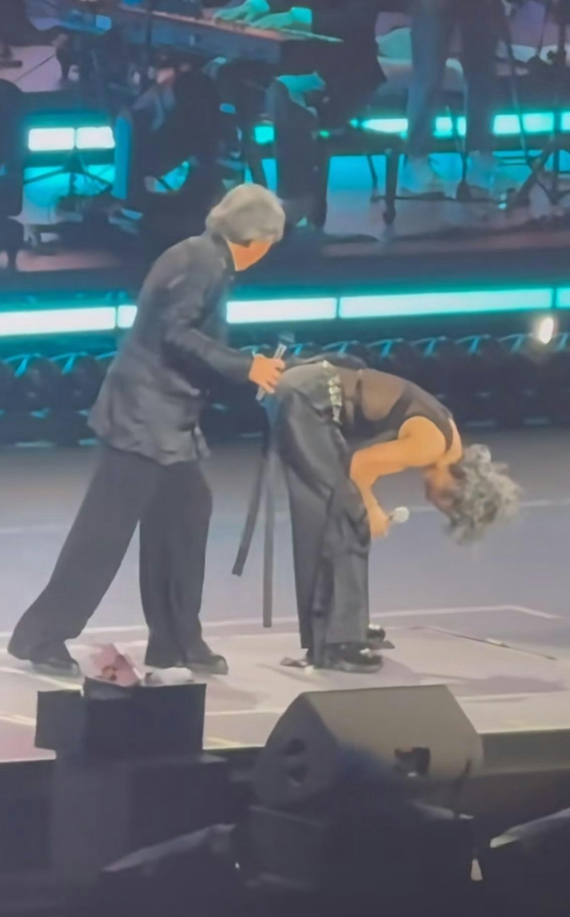 林子祥與葉蒨文在台上愈玩愈盡興,在台上又攬又啜,極為甜蜜。林子祥又當眾打葉蒨文Pat Pat,有網民拍下片段。當時葉蒨文估計又唱又跳完,正彎腰休息,林子祥從後見狀,打了葉蒨文Pat Pat兩次,非常玩得!葉蒨文又如小女孩般傾情演出,一度興奮得衝前攬爆林子祥啜。另外,葉蒨文當晚造型性感,穿上透視裝,露出性感上身,肌肉量十足,Keep得非常好!有人笑指:「老人真會玩」。