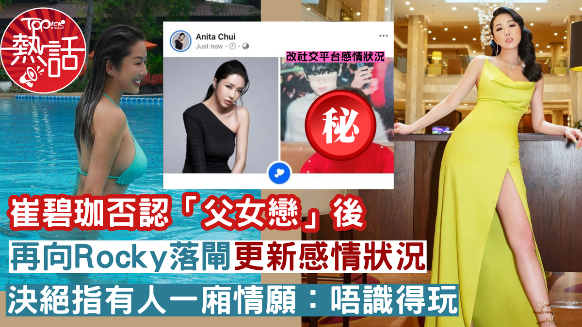 ▲崔碧珈否認「父女戀」後再向Rocky落閘,更改新感情狀況,決絕指有人一廂情願:唔識得玩。