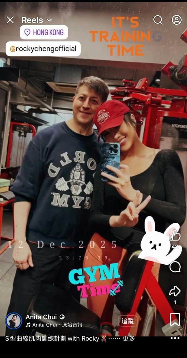 【崔碧珈 / 鄭健樂 / 宅男女神 / 香港先生】現年37歲的性感女神崔碧珈(Anita Chui)日前在社交平台上載與58歲的「大隻佬」鄭健樂(Rocky)做Gym的合照,但未透露兩人有特殊關係;不過,Rocky隨後卻在社交平台放Anita的照片,更將情感裝改為與對方戀愛中。兩人因年齡相差21歲,「父女戀」隨即引起熱討。
