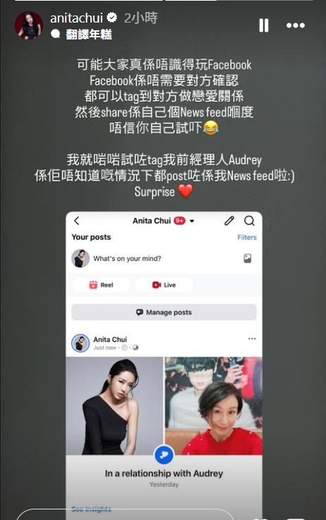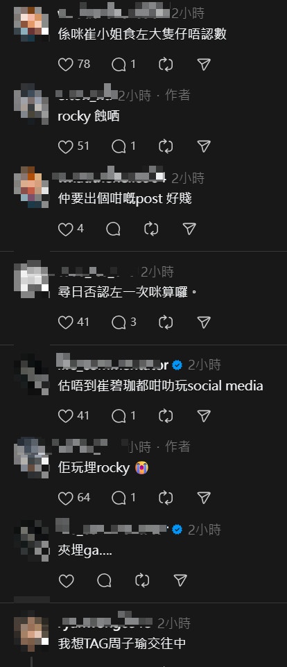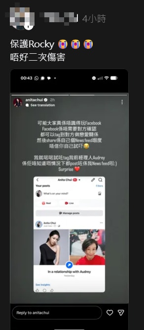 對於有網民質疑Facebook的感情狀況更新是需要另一方確認,崔碧珈為表「清白」就來一次實測,將自己的Facebook情感狀況更改為與前經理人「交往中」,寫著:「我哋正式一齊咗啦」。不少網民覺得崔碧珈此舉是對Rocky的二次傷害,有人在threads轉發帖文表示:「保護Rocky 😭😭唔好再二次傷害」,不少人和議:「玩X人」、「Rocky蝕晒」、「好慘」等等。問到Rocky看過留言後會否好感動?他說:「