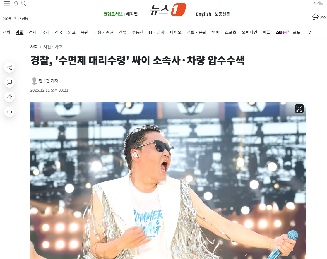 根據《News1》11日報導,警方4日對 PSY 公司辦公室與車輛進行搜索,並取得其手機進行數位鑑識,以調查是否存在長期「在沒有親自接受診療」的情況下「由經紀人代領藥物」。目前掌握到的資料包含院方診療紀錄與處方相關內容,後續不排除對 PSY 進行傳喚。