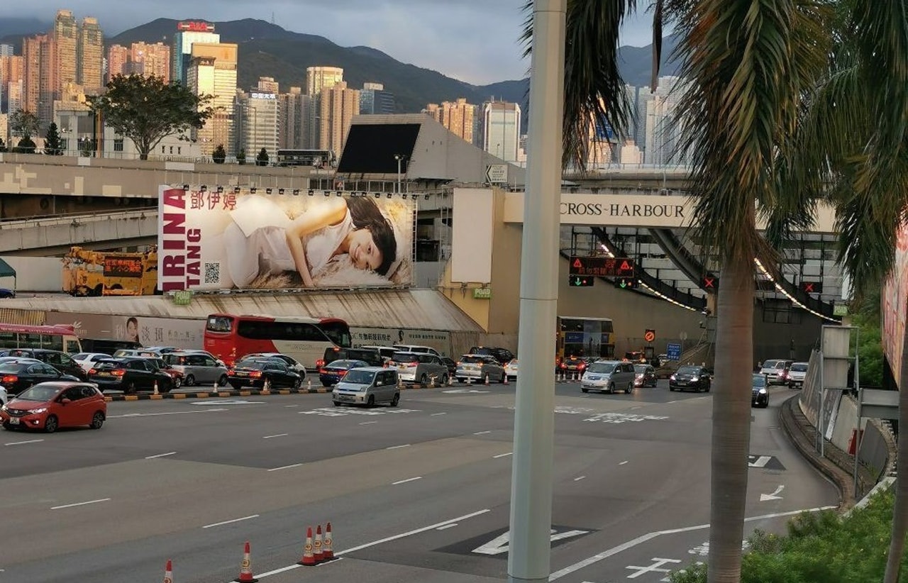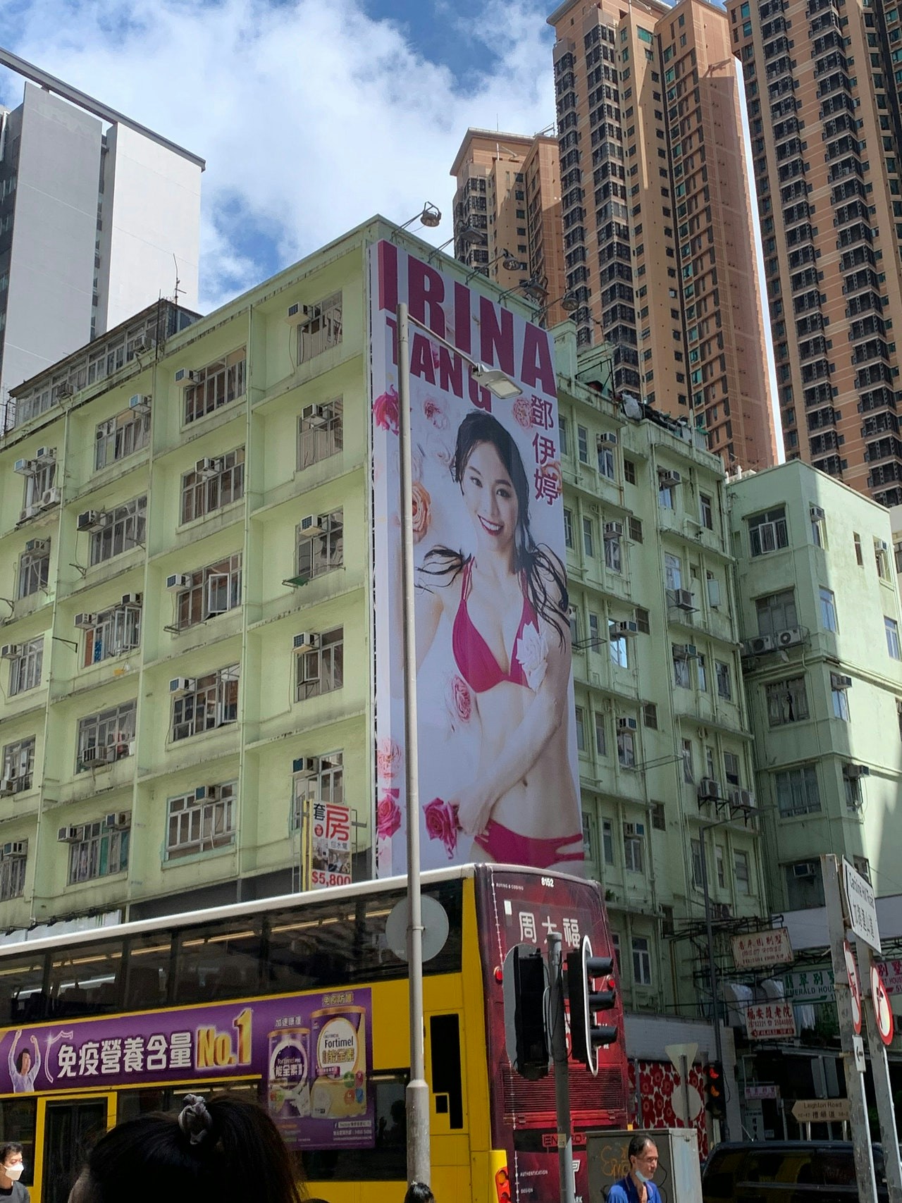 鄧伊婷在紅隧口的廣告牌上完全沒有品牌名及任何宣傳字句,大大個人打橫瞓,除了名字外,仲有一個連結到fb嘅二維碼。(網上圖片)