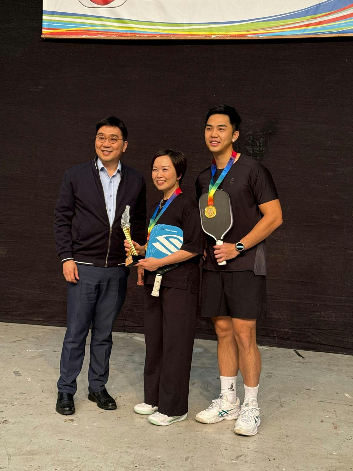 談及搭檔Ming姐的表現,伍富橋讚不絕口,直言對方的運動細胞令人刮目相看:「Ming姐狀態非常好,佢正手好穩陣,同佢拍檔非常放心。」在決賽中,兩人默契十足,最終以10分之差的絕對優勢,擊敗由關楚耀與陳庭欣組成的強勁隊伍,成功捧走首屆冠軍獎盃。