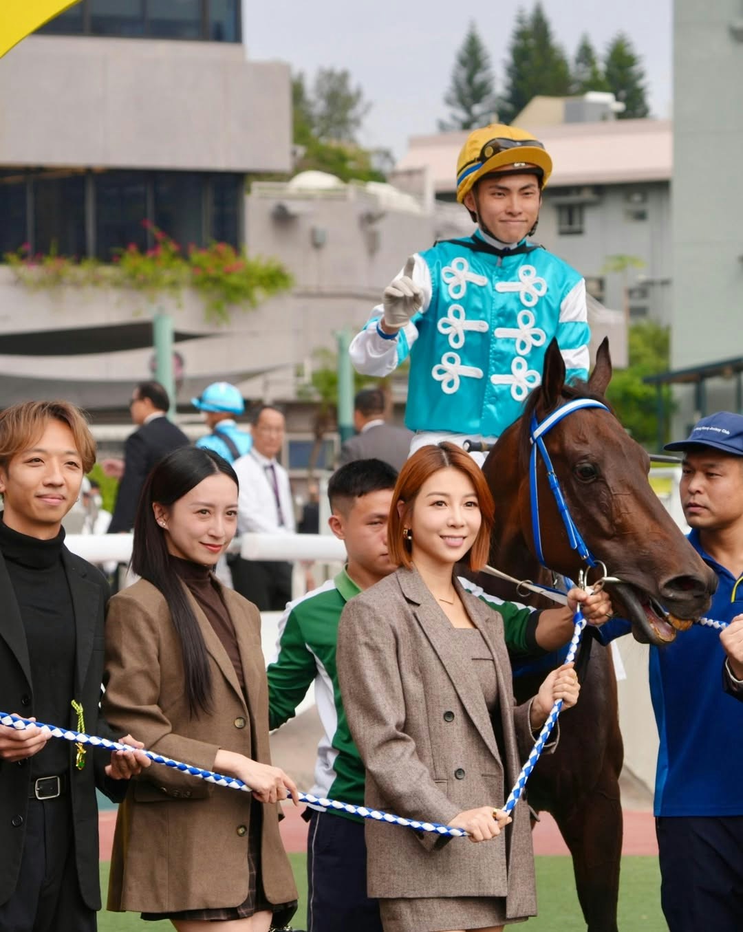 現年41歲的黃婉曼(Icy)是前TVB天氣女郎,2010年離巢後,2014年嫁給會計師兼馬主馮柏基,婚後育有兩女,一家四口幸福美滿。昨日(7日)黃婉曼老公的愛駒「飛雲」在沙田馬場出戰第二場五班泥地千二米,成功擊敗對手,贏得在港首場頭馬。黃婉曼在社交平台分享喜悅,「視后」好友龔嘉欣亦有到場打氣,賽事勝出後齊齊拉頭馬影大合照。