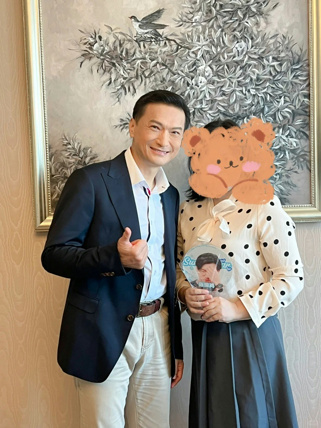 現年58歲的陳錦鴻曾為TVB當家小生,曾參演不少劇集,包括《創世紀》、《刑事偵緝檔案IV》等,塑造了無數經典角色,但他一度為了照顧自閉症兒子而息影,直至近年低調復出,主力在內地登台吸金。早前有網民在社交平台曬出與陳錦鴻的合照,並寫道:「好喜歡鴻哥拍的《創世紀》。」相中所見,身穿Polo短袖、戴着黑框眼鏡的陳錦鴻,氣質儒雅,他更笑容滿面地搭住對方膊頭合照,相當親民!
