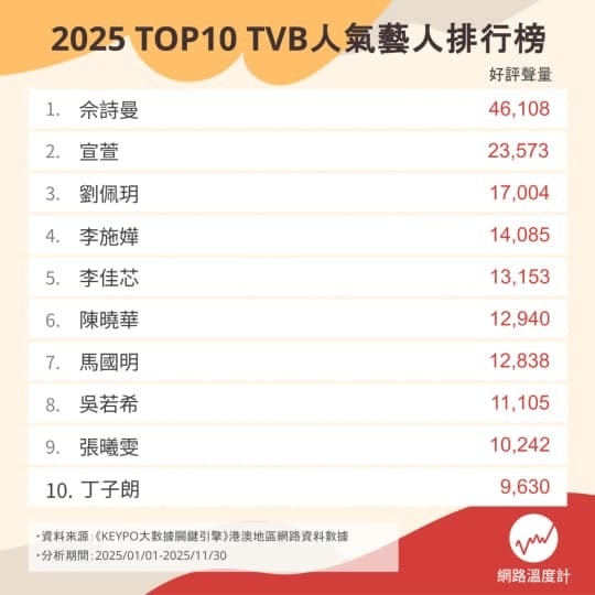 2025 TOP10 TVB人氣藝人排行榜(網路溫度計DailyView授權使用)