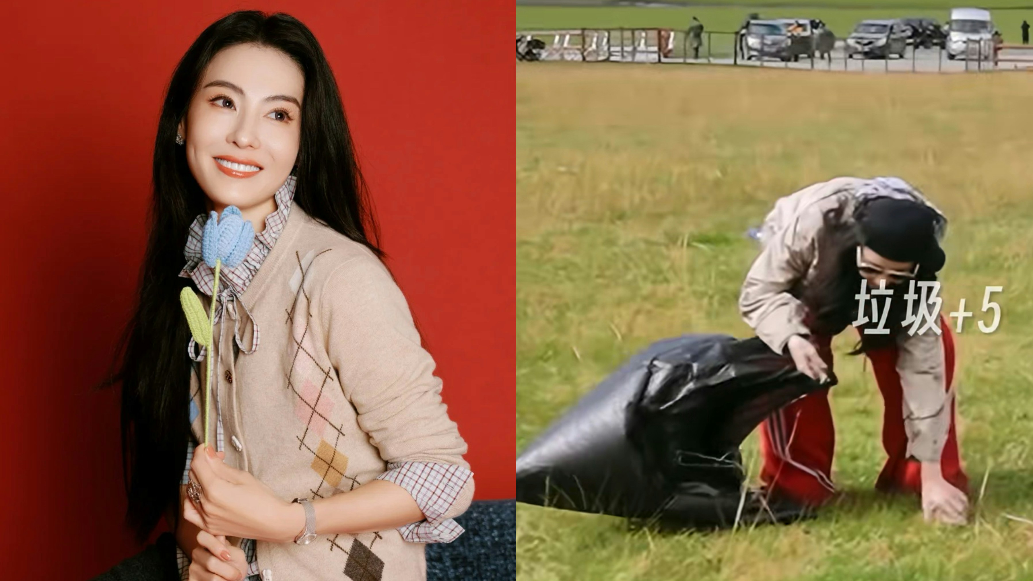 張栢芝拍自備袋堅持清理草原垃圾勁圈粉 網民讚:體現了相由心生 #張栢芝