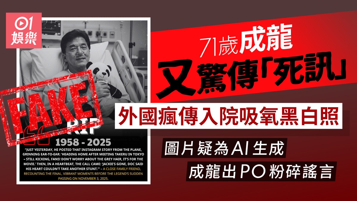 71歲成龍被外國瘋傳因病猝逝消息 被指遭AI生成入院吸氧黑白假相 #成龍 #瘋傳