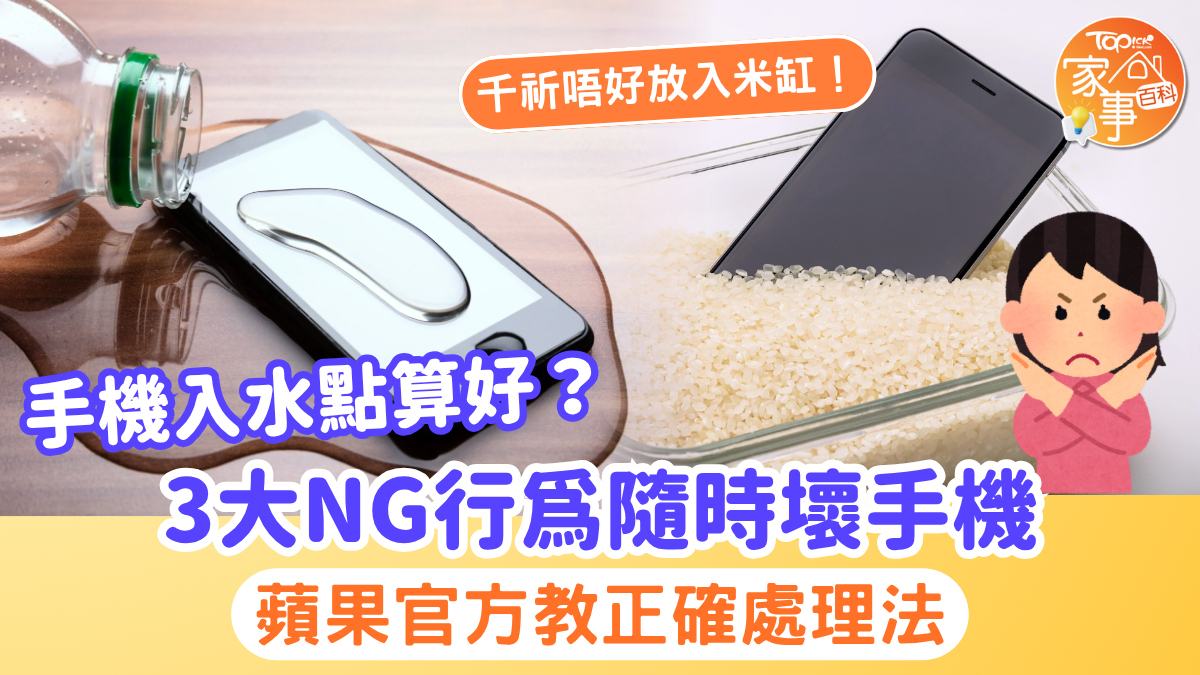 ▲手機入水3大NG行為隨時壞手機,蘋果官方教正確處理法。【iPhone入水急救/手機入水維修】手機進水怎麼辦?iPhone雖有防水功能,但仍存在風險, ...