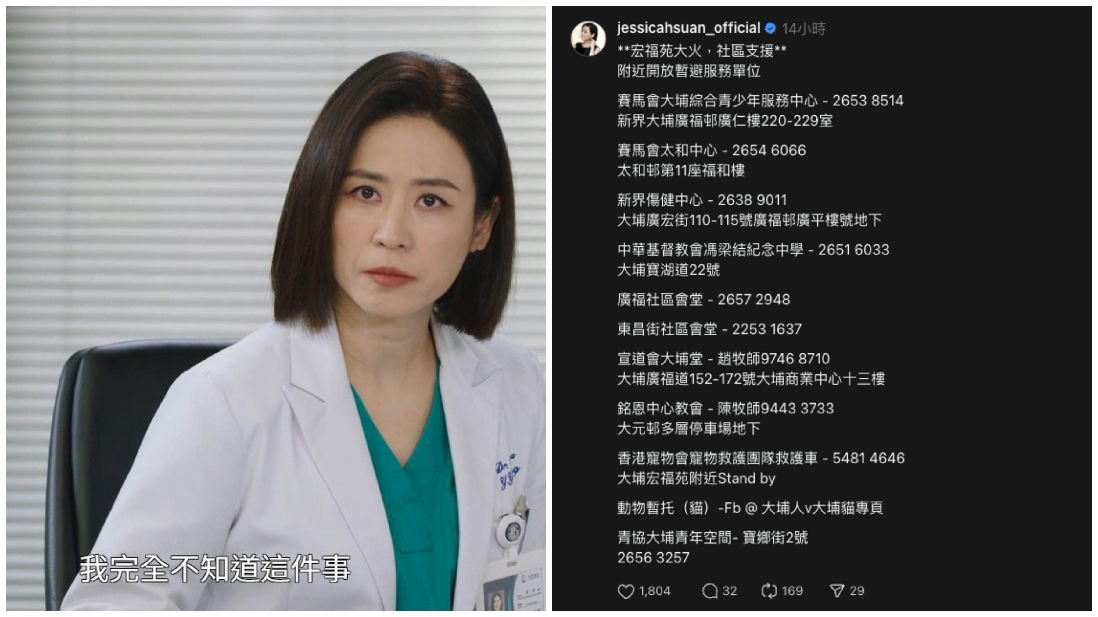 宏福苑五級火|宣萱轉發援助服務資訊 心善集氣:願你們都平安 #宣萱