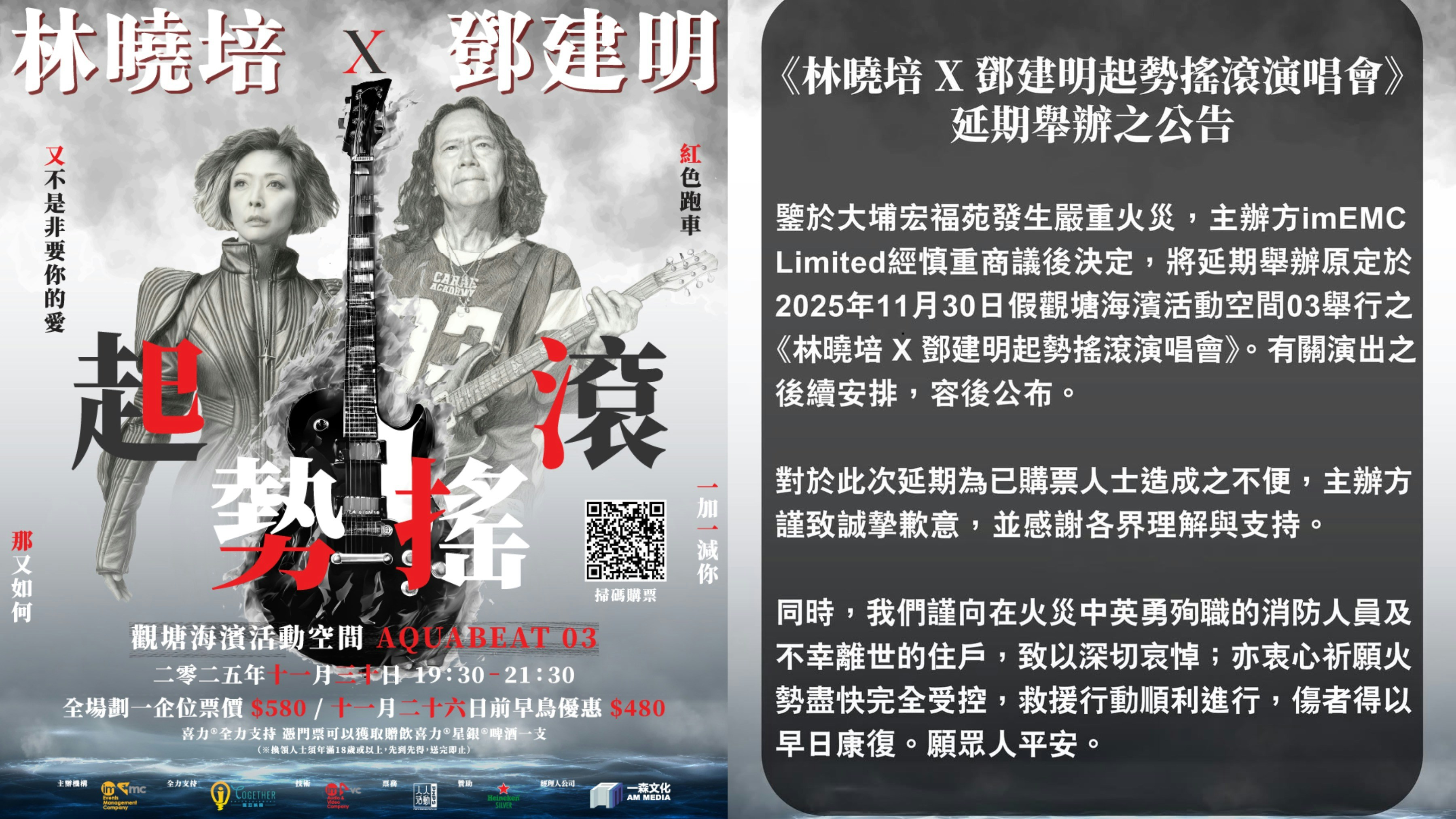 大埔宏福苑五級火|鄧建明林曉培搖滾音樂會延期 後續容後公布 #林曉培