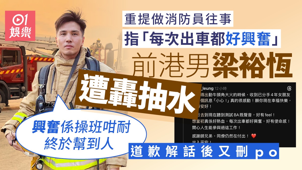 前港男梁裕恆憶做消防稱「每次出車都興奮」 遭網民轟抽水後致歉 #梁裕恆
