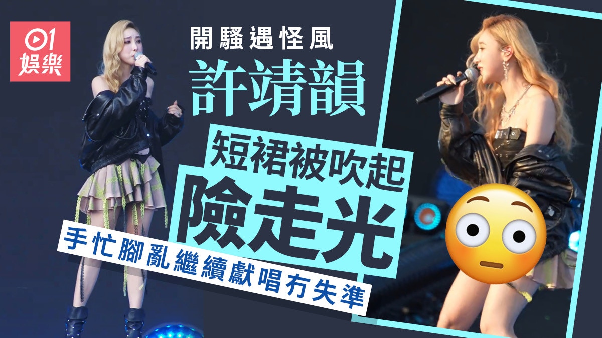 許靖韻開騷被風吹起短裙陷走光邊緣 雙腿夾緊手按裙擺繼續唱歌 #許靖韻