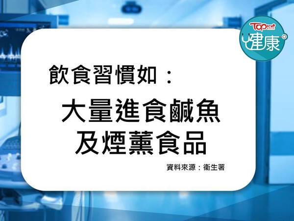 • 減少食用醃漬食物,降低鼻咽癌罹患機率