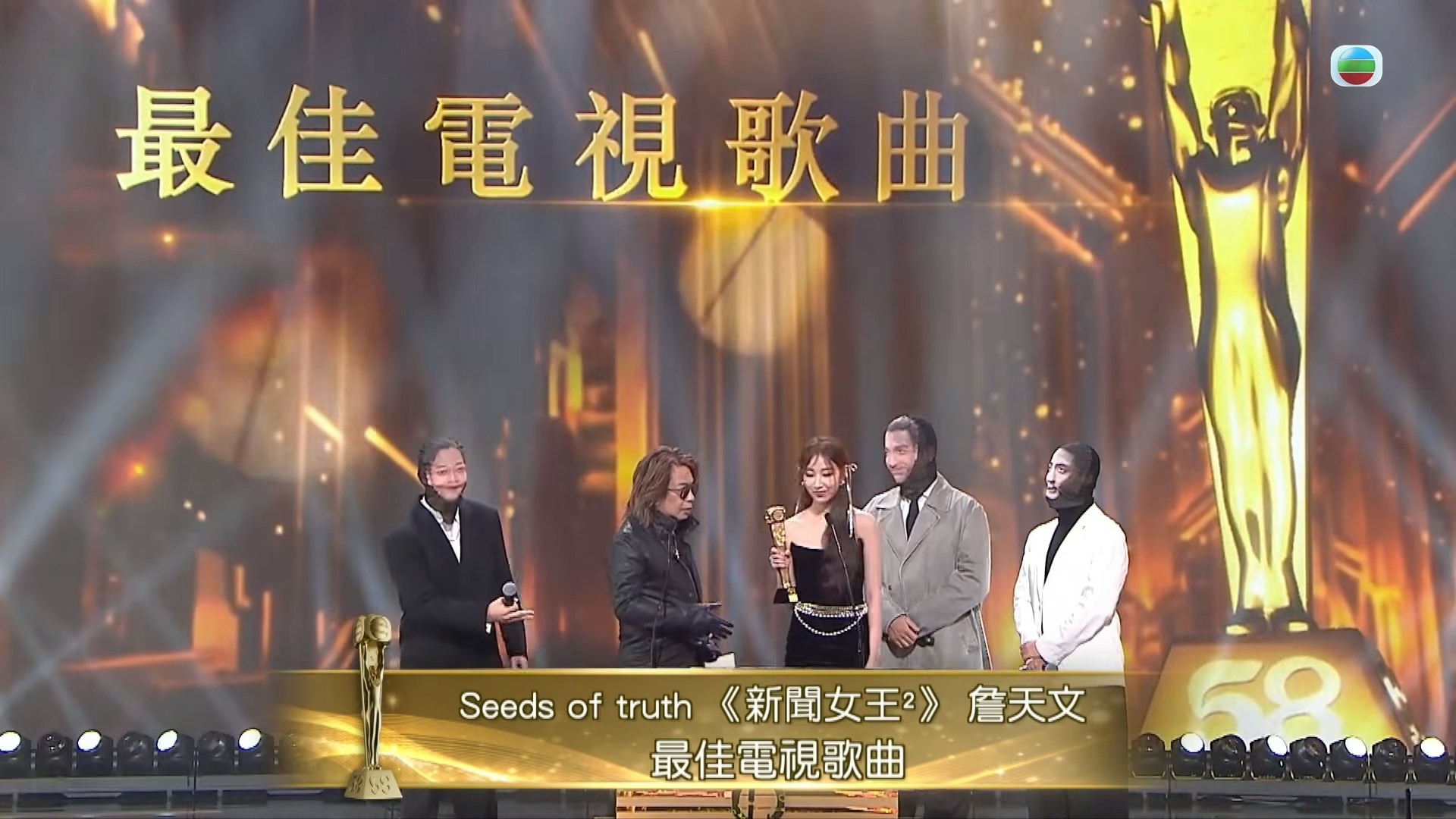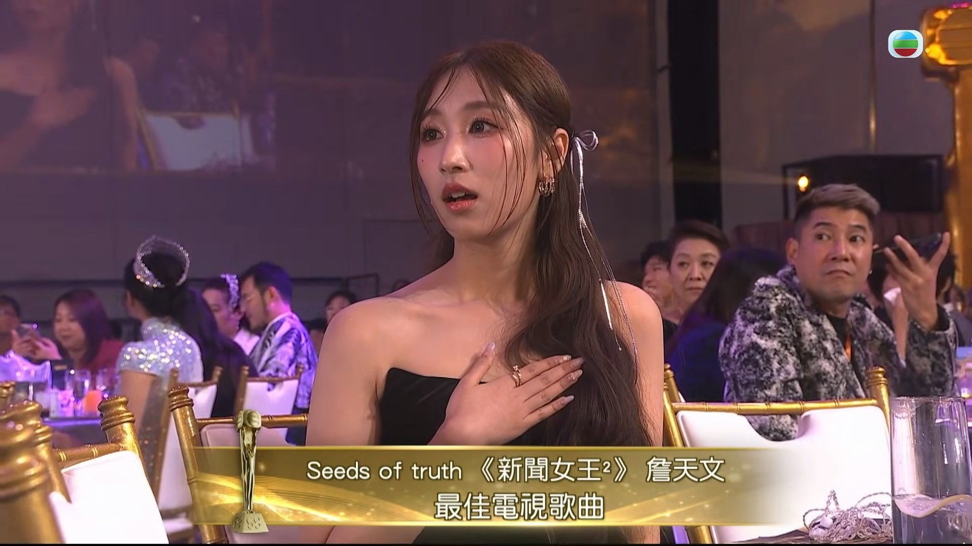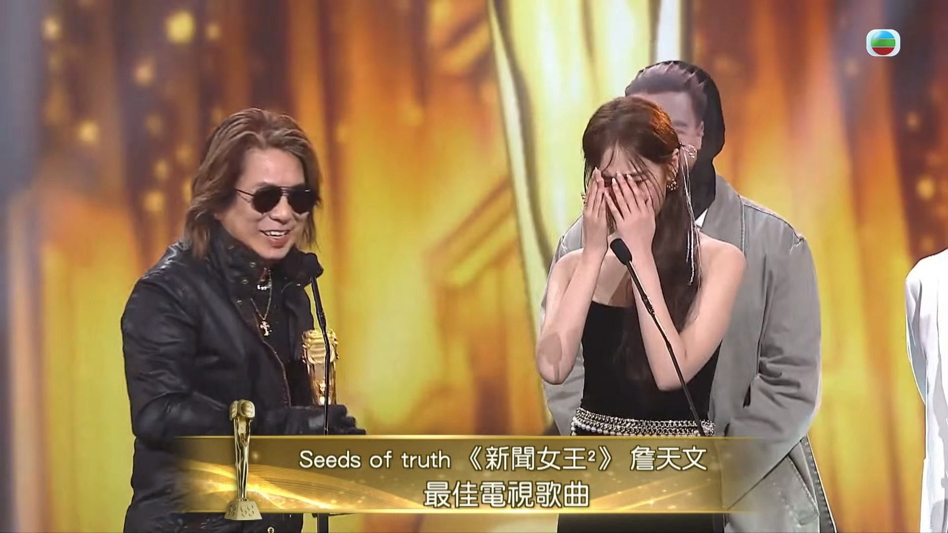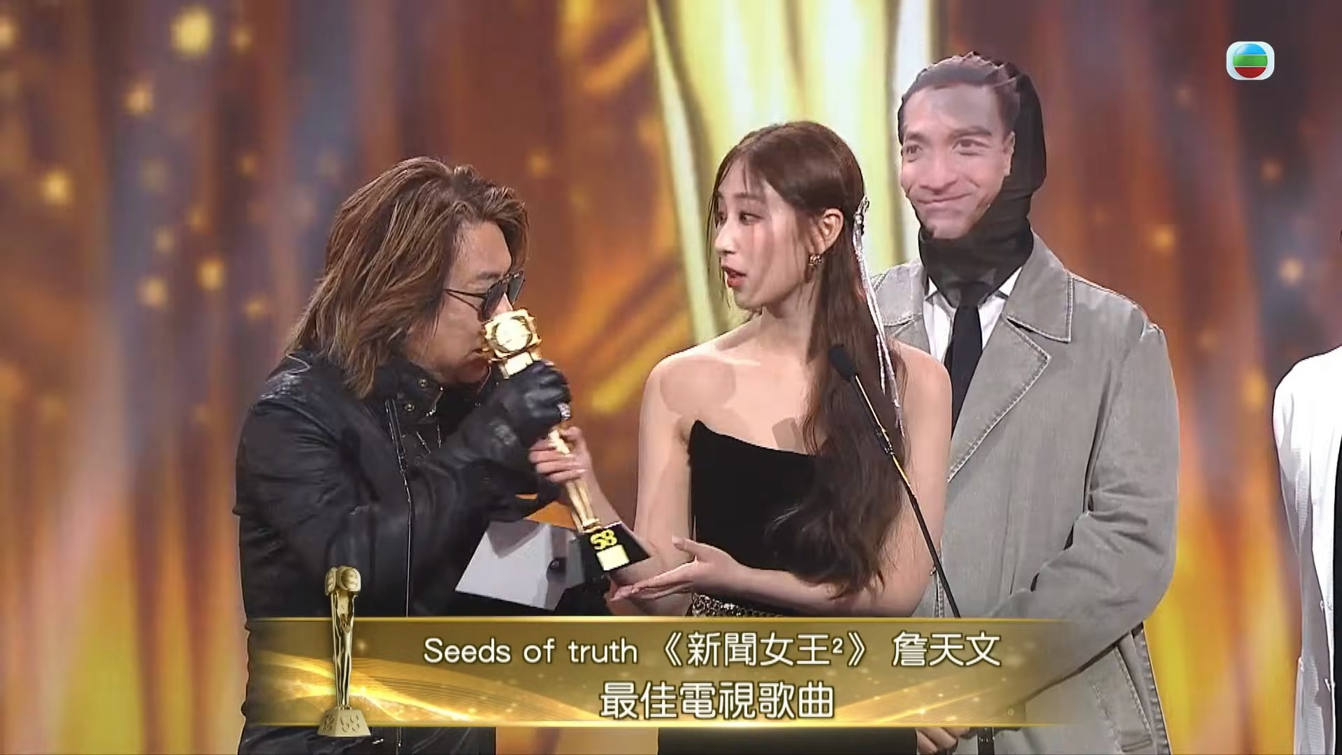 TVB《萬千星輝頒獎典禮2025》日前於澳門圓滿結束,當晚頒發多個重要獎項,其中「聲夢小花」詹天文(Windy)憑藉台慶大劇《新聞女王2》的插曲〈Seeds of Truth〉奪得「最佳電視歌曲」。不過,年僅19歲的Windy或許是首度登台奪大獎,情緒極度激動,在領獎環節驚現尷尬一幕,令全場觀眾及台下嘉賓都嚇了一跳!詹天文(Windy)憑藉台慶大劇《新聞女王2》的插曲〈Seeds of Truth〉奪得「最佳電視歌曲」。(YouTube@TVB (official)) 詹天文首奪「最佳電視歌曲」超緊張上台直接「搶獎」 當晚頒發「最佳電視歌曲」時,大會找來鬼才林敏驄擔任頒獎嘉賓。當阿驄讀出得獎者是詹天文的一刻,Windy顯得非常興奮,箭步衝上台。然而,不知是否因為心情過於激動,Windy一上台竟完全無視身旁的頒獎嘉賓,在林敏驄尚未正式頒獎時,便自己伸手拿走獎座,並隨即轉身面向觀眾準備致辭。