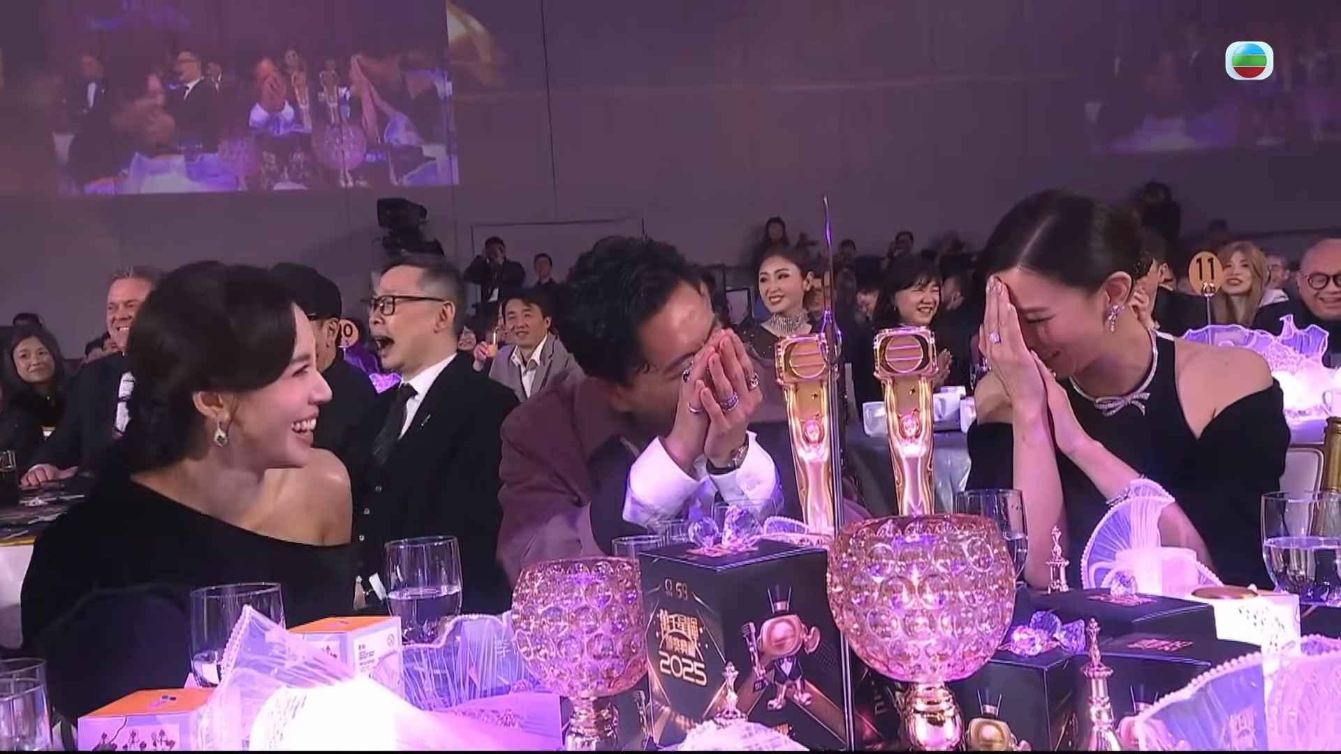 台下的佘詩曼、李施嬅、黃宗澤等人都尷尬到伸手掩臉。(YouTube@TVB (official))