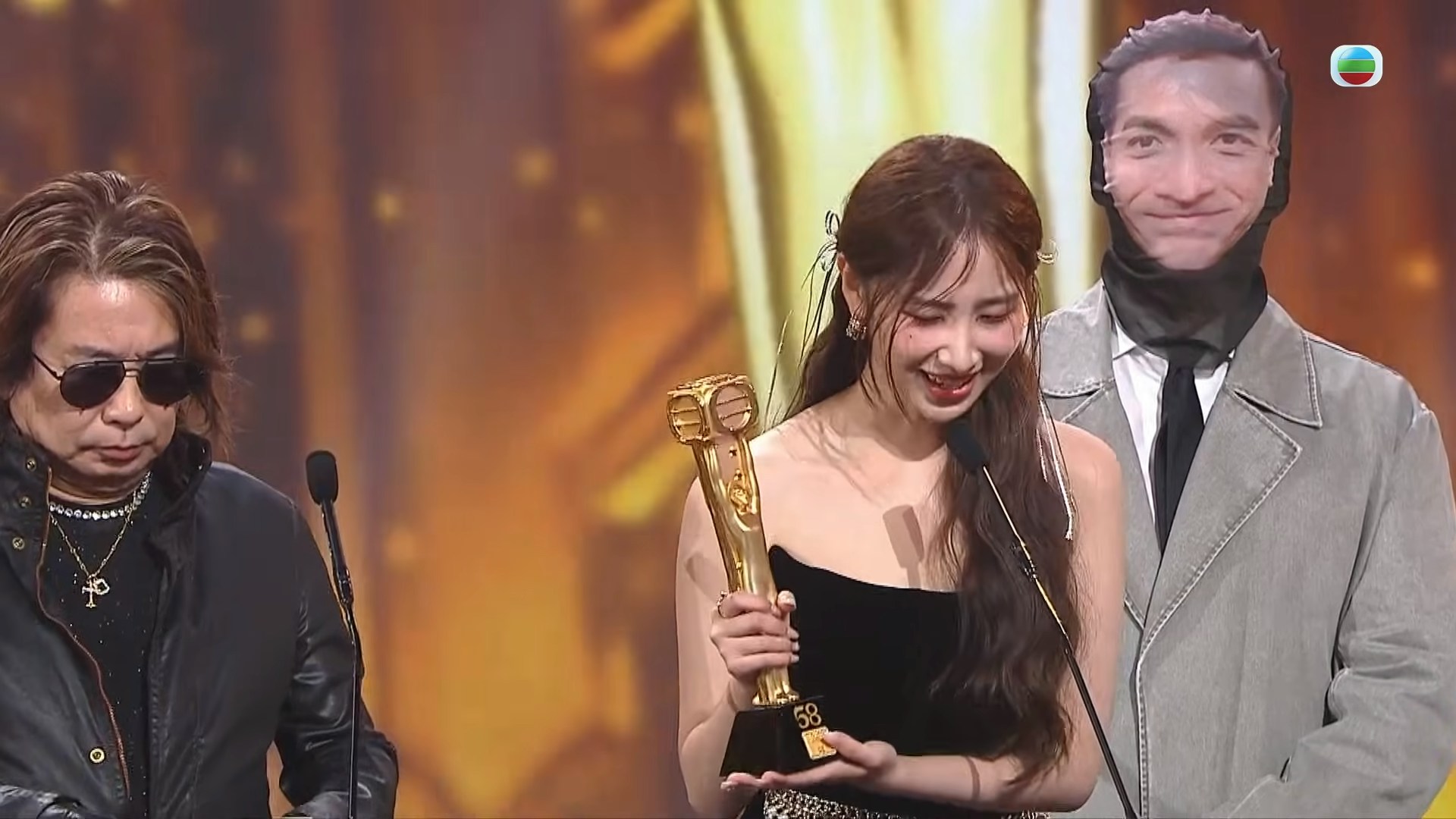 林敏驄將獎座拿回來,準備重新頒獎。(YouTube@TVB (official))