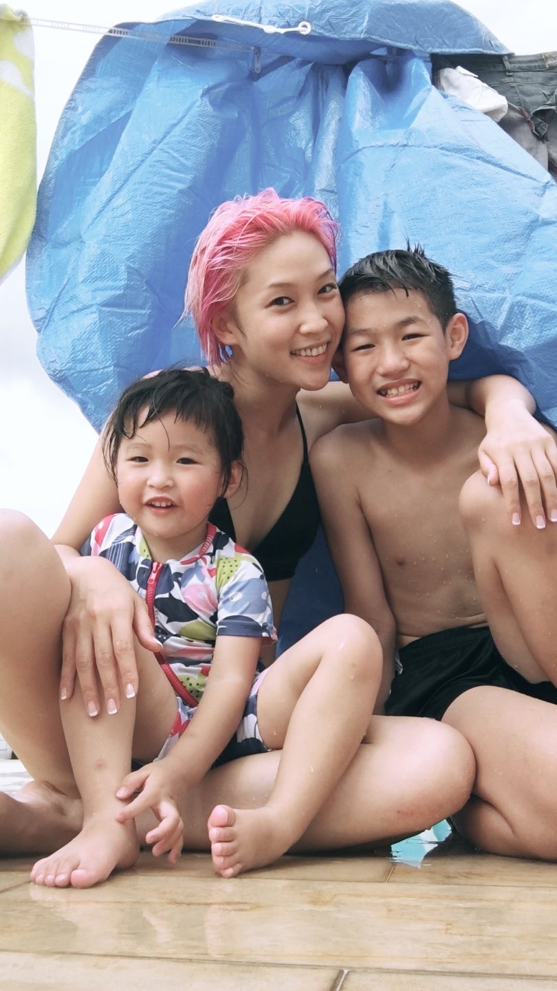 蔣祖曼和繼子Day仔的感情很好,而細女可可就跟Day仔像是親兄妹一樣相處。(IG@jomanchiang)