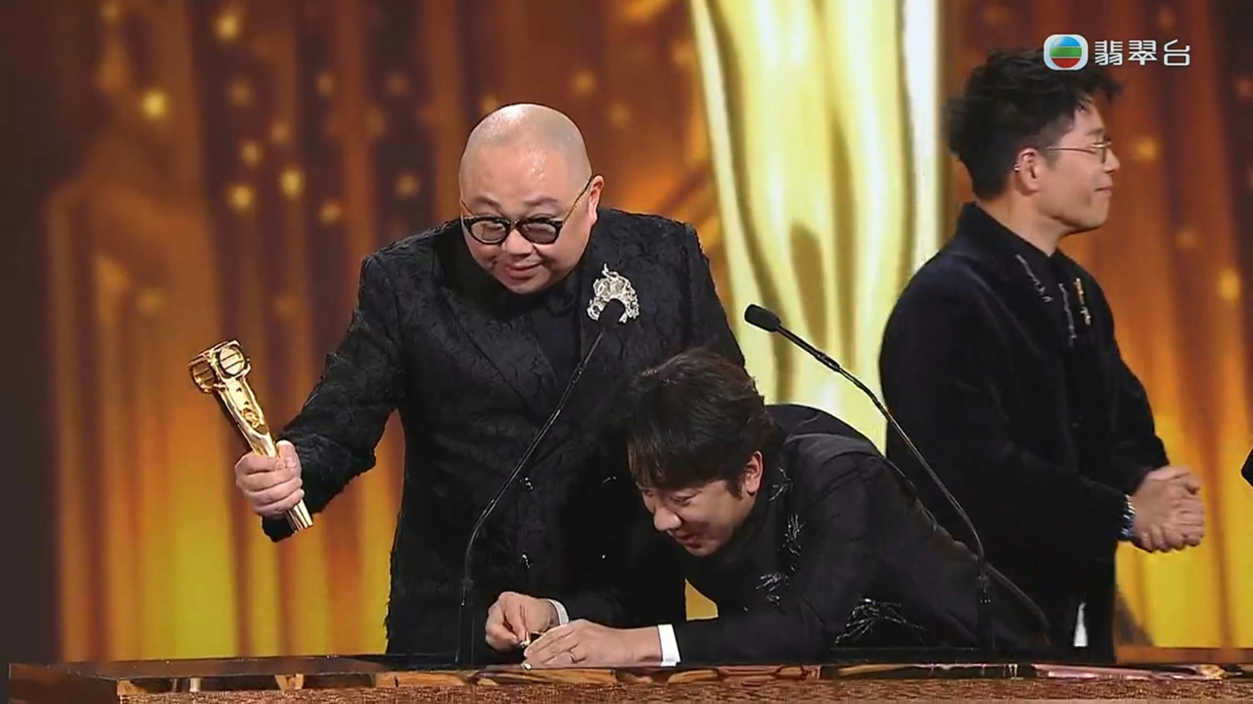 TVB《萬千星輝頒獎典禮2025》昨日(2026年1月4日)於澳門上葡京綜藝館舉行,「最佳男主持」獎項由林盛斌(Bob)奪得,但他致辭時就太過激動,舉起獎座再放落枱時,一下子將獎座「鋤」爛,頓時一分為二,被譏笑是「Bob爛個獎」。