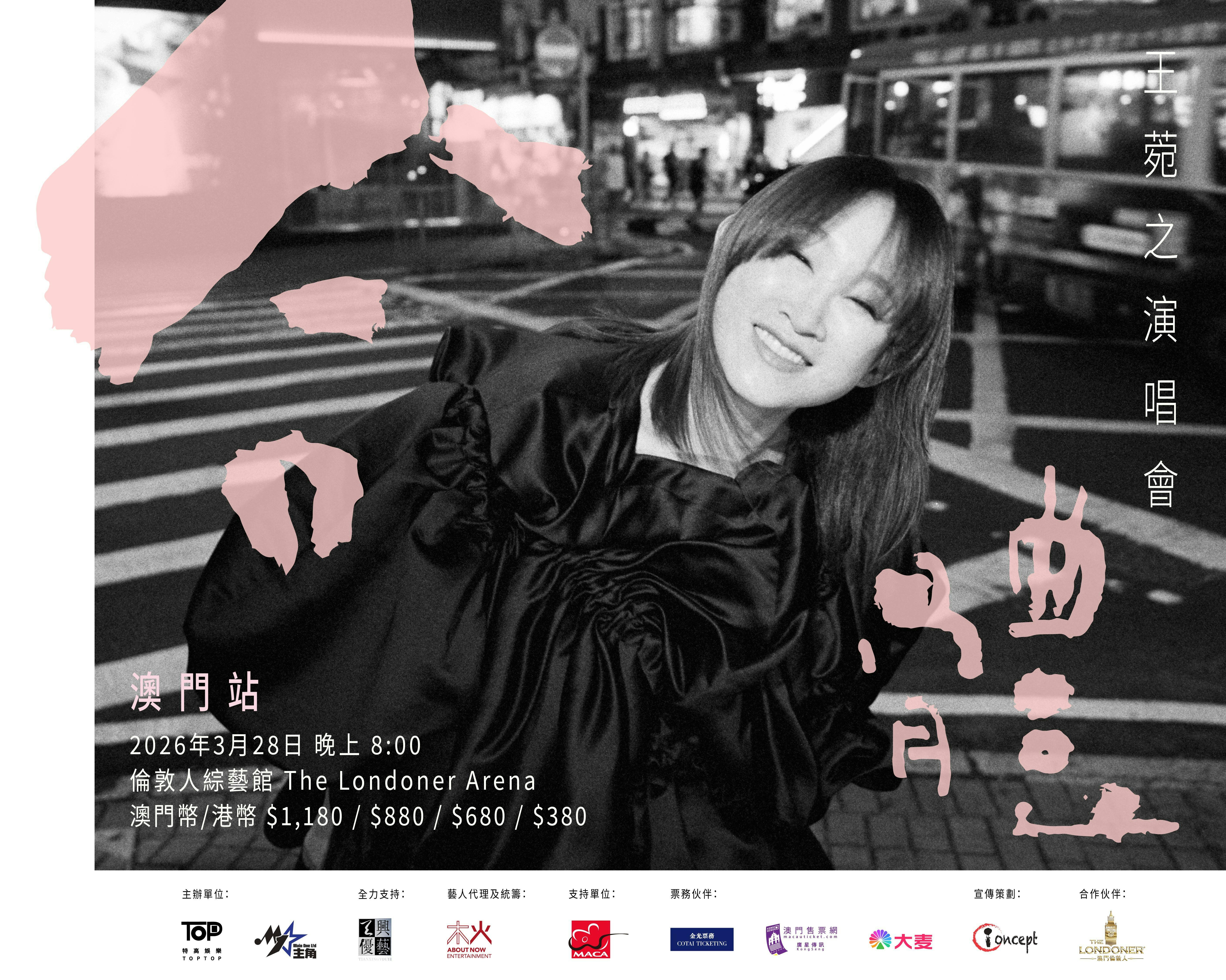 演唱會日期:2026年3月28日(星期六) 演唱會時間:晚上八點 演唱會地點:倫敦人綜藝館 The Londoner Arena 門票價錢:澳門幣/港幣 $1,180/$880/$680/$380 公開發售平台 :金光票務、澳門售票網、大麥網 公開開賣日期:有待官方公佈